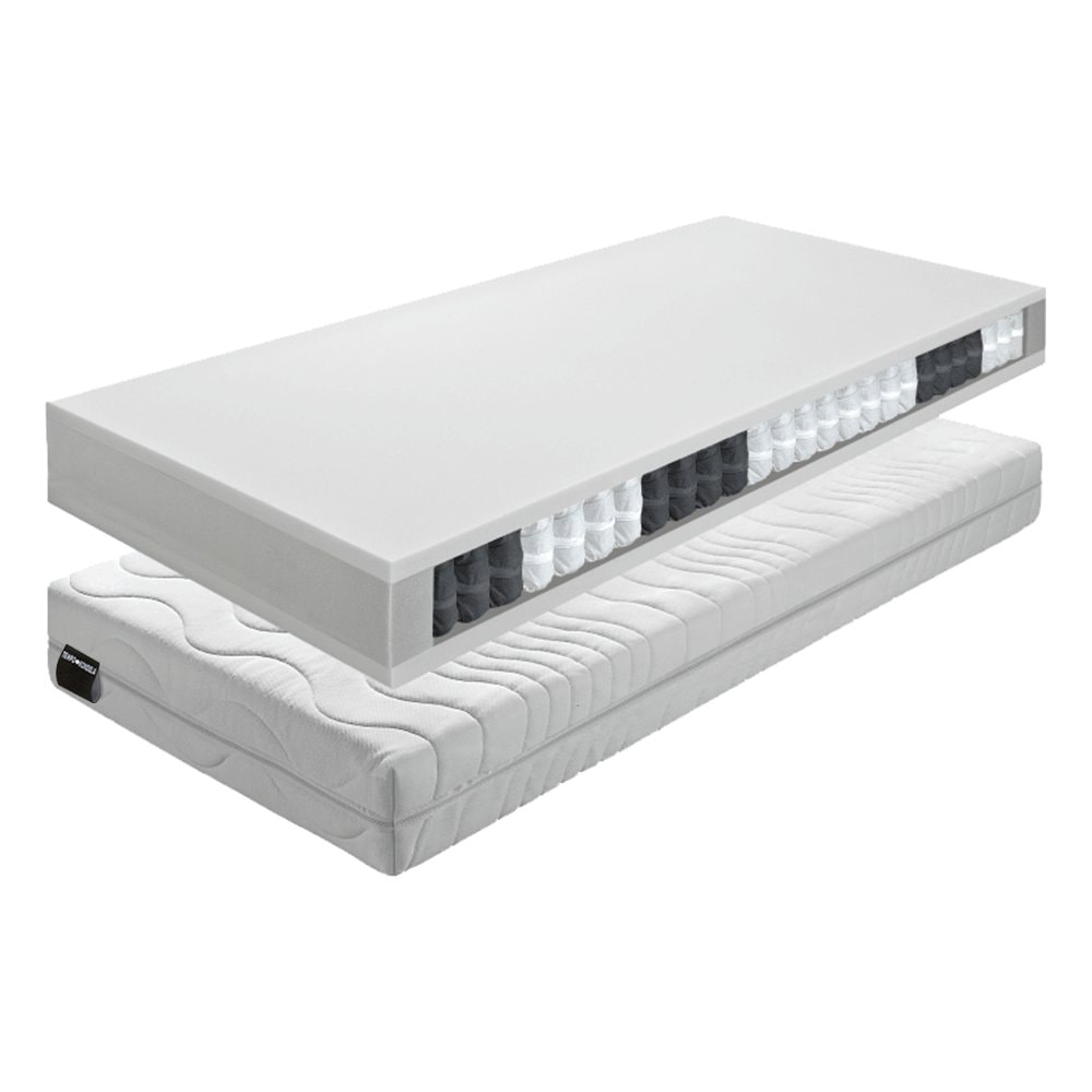 Matrac lepená nejnovější technologií HOTMELTZáklad matrace tvoří taštičkové pružinyPružiny jsou obloženy čalounickou plstí, polyuretanovou pěnou T25-25 mmPotah CHLOE AKTIVPotah s certifikátem OEKO-TEX STANDARD