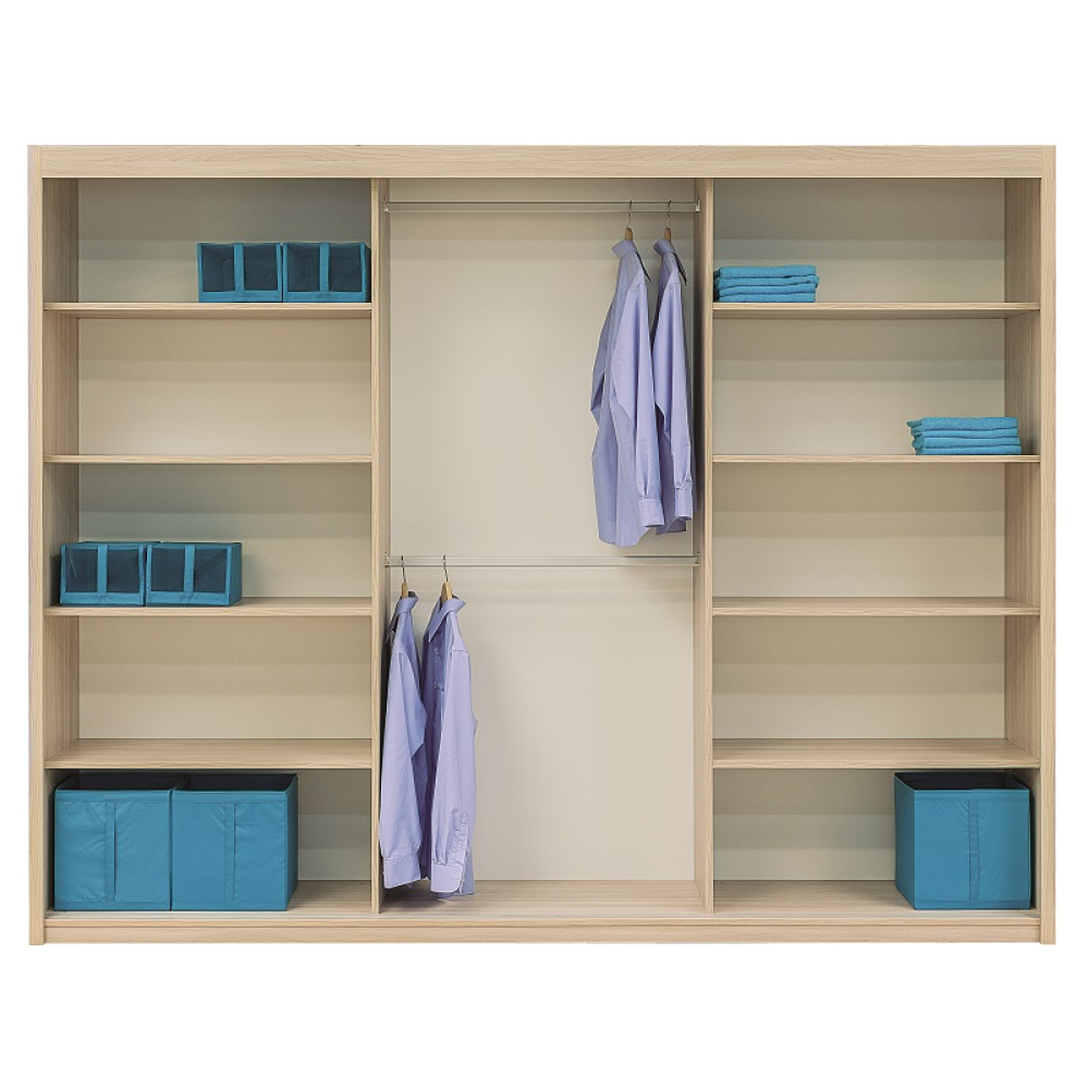 Rozměry skříně (š x h x v): 270 x 60 x 210 cm.