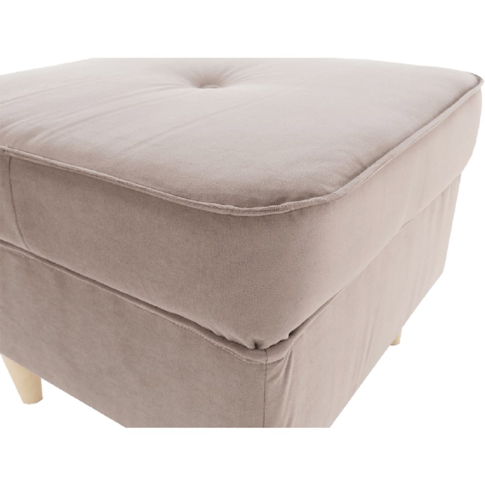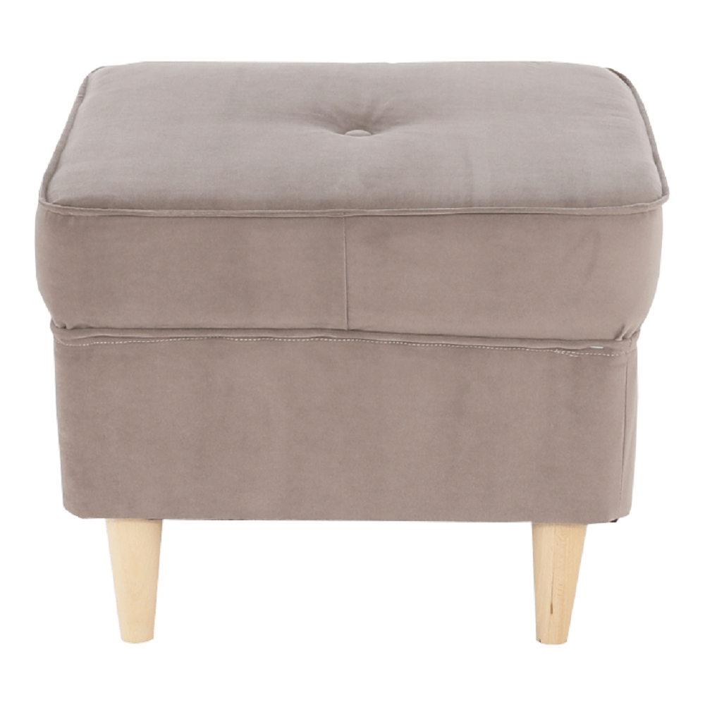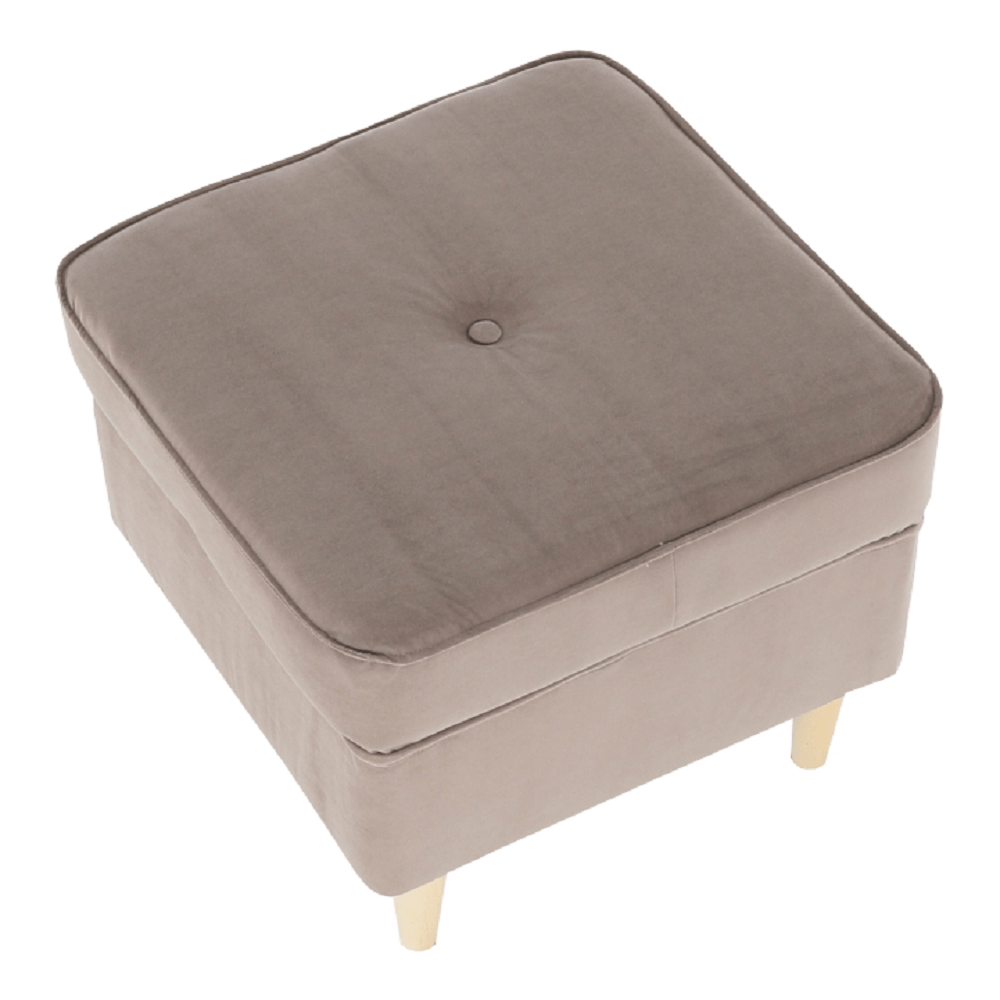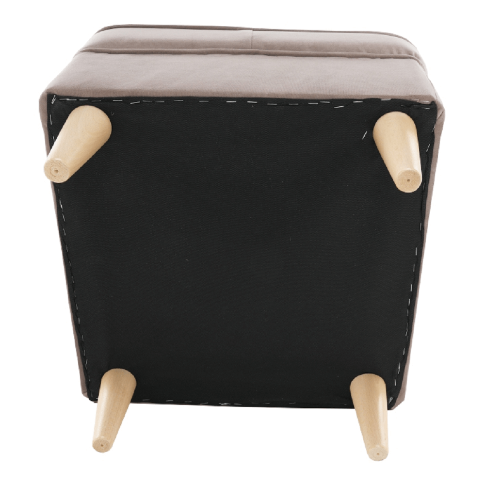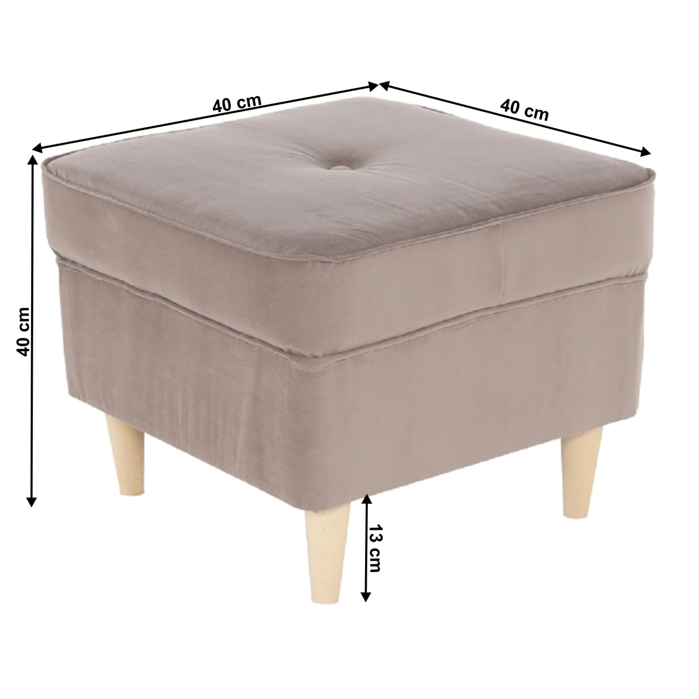 Moderní taburet RUFINO 3 NEW Materiál: látka Trinity / dřevo Oděruodolnost textilie podle testu Martindale: 55 000 oděrek Barva: béžovosivá / buk Rozměry: (ŠxHxV): 40x40x40 cm Výška spodního prostoru od podlahy: 13 cm Nosnost na osobu: 110 kg Dodávány v monte.