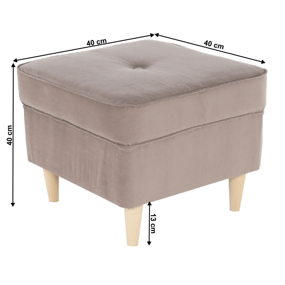 Často se dokonce používají i jako konferenční stolek k odložení novin a časopisů. Jako doplněk ho můžete kombinovat se sedací soupravou nebo křeslem, nebo jej použít jako dekoraci v obývacím pokoji. Taburet RUFINO v nadčasovém designu se pro vás stane nezaměnitelným pomocníkem. Ve chvíli, kdy obývací pokoj zaplní dav lidí, zaujme postavení sedadla pro jednoho z hostů, který se bude ve společnosti cítit stejně komfortně jako ostatní. Sedák je očalouněný kvalitní látkou. Elegantní nožičky jsou vyrobeny ze dřeva Zkombinujte taburet s ušákem Rufino a vaše relaxační zóna je připravena.
