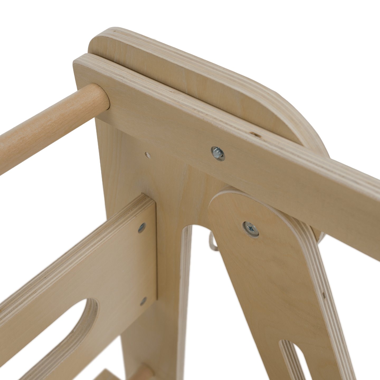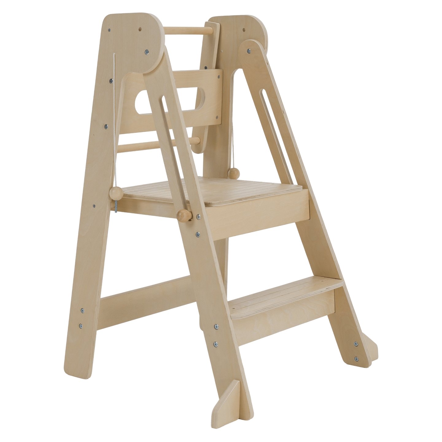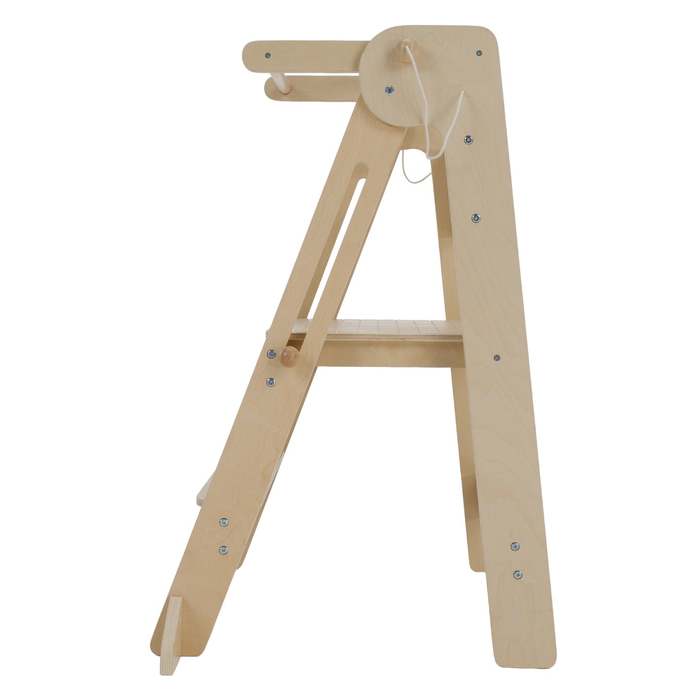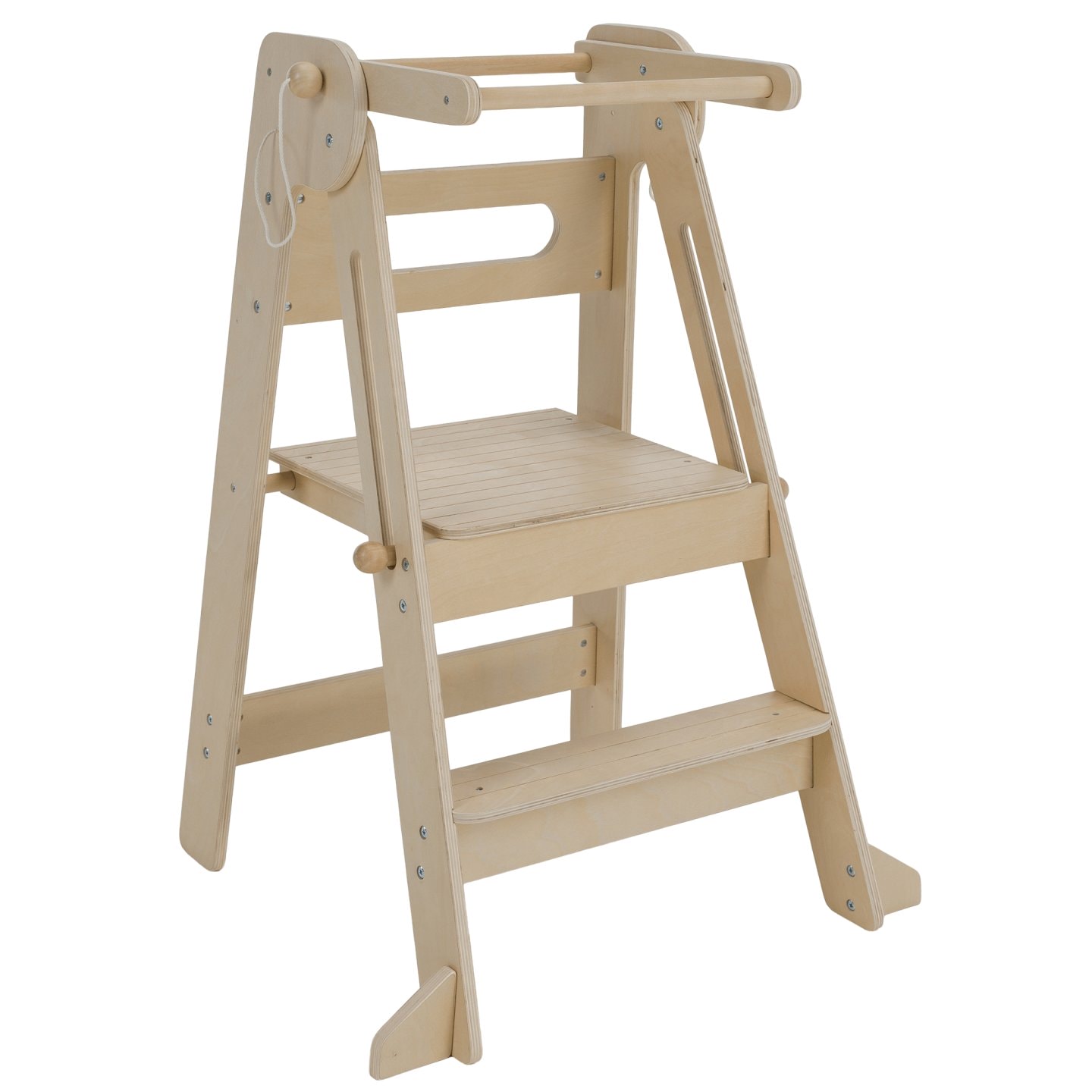 Objevte dokonalého pomocníka pro zvídavé děti a aktivní rodiče. Montessori skládací učící věž URIAN v neutrálním přírodním barevném provedení otevírá dětem dveře nejen k samostatnosti, ale také k učení. Dává malým objevitelům prostor zapojit se do světa dospělých, ať už při pečení koláčů, mytí ovoce nebo čištění zoubků, čímž podporuje jejich nezávislost a sebedůvěru. Její praktická skládací konstrukce umožňuje jednoduché uskladnění, když ji zrovna nepotřebujete nebo snadnou manipulaci při přesouvání mezi místnostmi. Věž je vybavena uzamykacím mechanismem, který při otevření drží věž bezpečně na místě. Vyrobena je z překližky, která zajišťuje pevnost a stabilitu při každém kroku. Zaoblené hrany chrání děti před poraněním, přičemž celé provedení splňuje přísné bezpečnostní požadavky normy EN 14988:2017 + A1:2020. Určena je pro děti starší než jeden rok, které již dokážou stát bez pomoci. Věž URIAN je připravena stát se nepostradatelnou součástí každé moderní domácnosti.