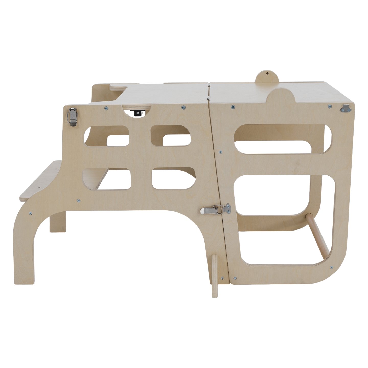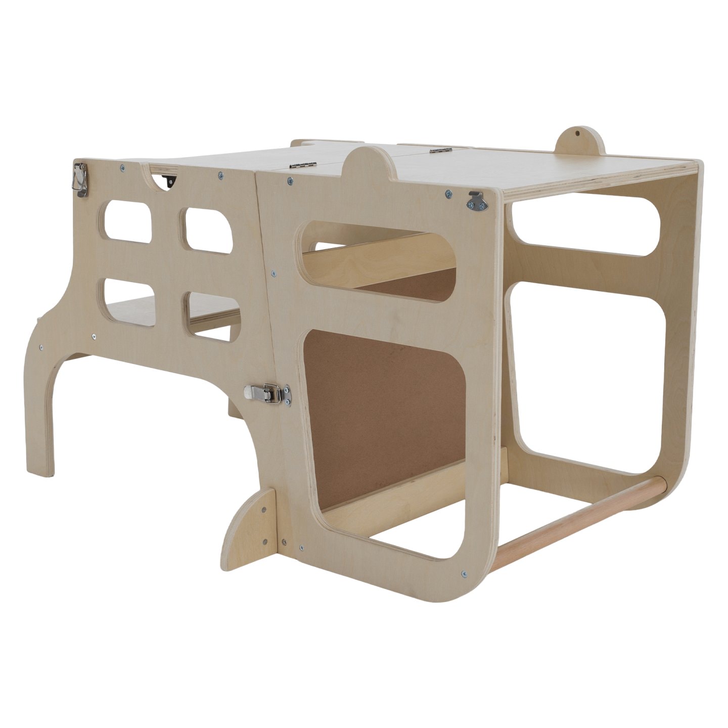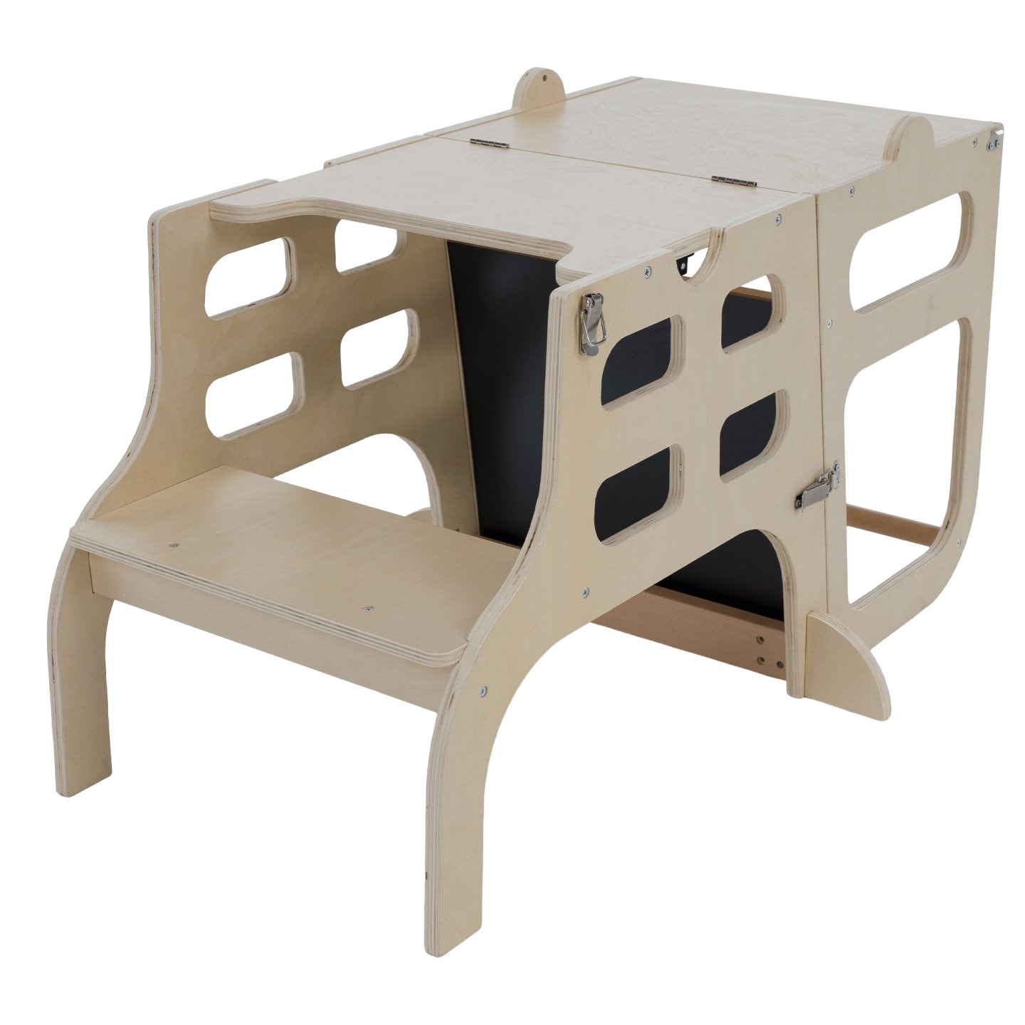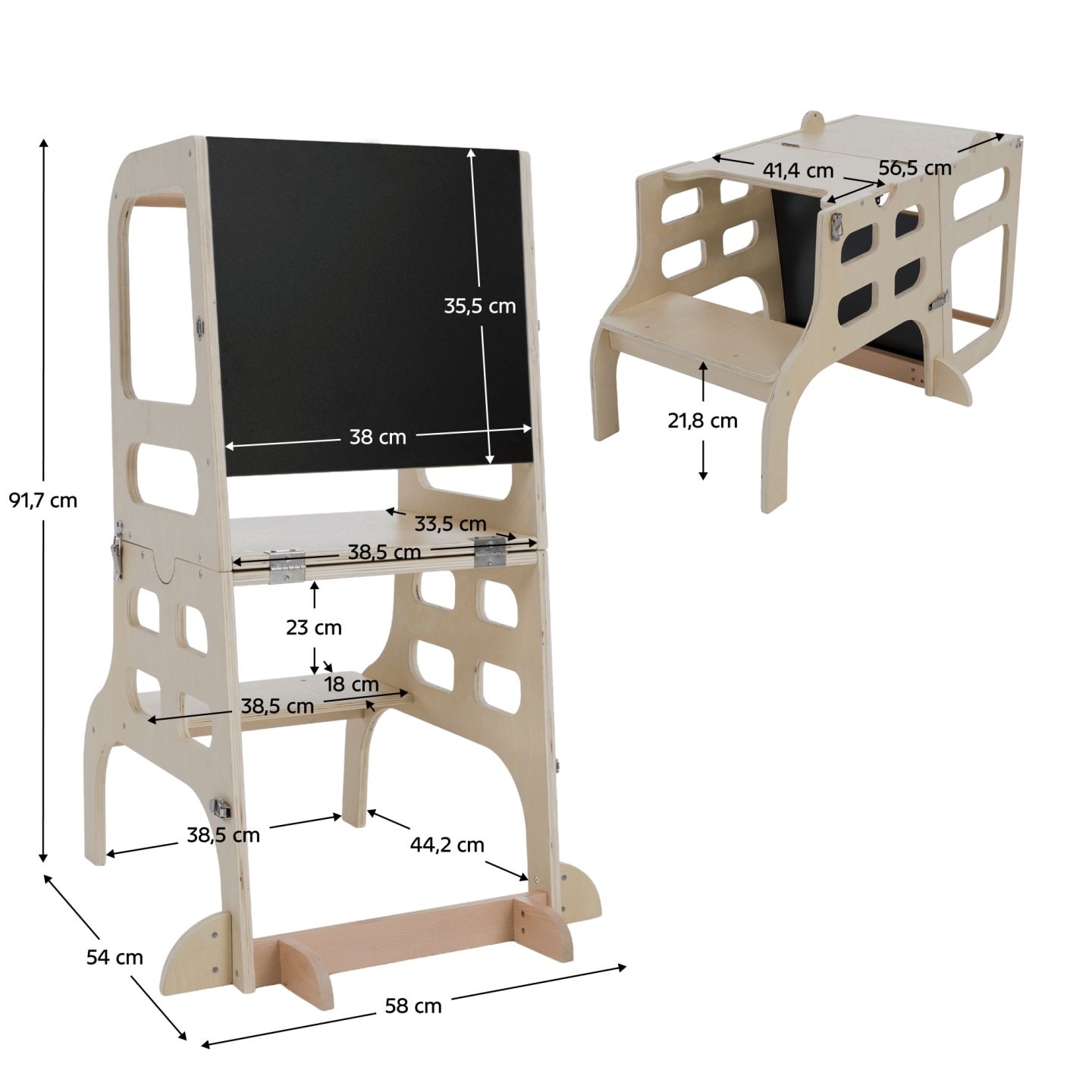 Materiál: masivní borové dřevo/překližka Barva: přírodní Rozměry (ŠxHxV): 57,5x64x91,2 cm Nosnost: Max. 50 kg Hmotnost: 6,20 kg Tloušťka materiálu: 1,5 cm Montessori učící věž 3v1 Učící věž Stolek a židle Tabule na kreslení Jednoduchá manipulace Vede děti k samostatnosti a učení Zaoblené hrany…