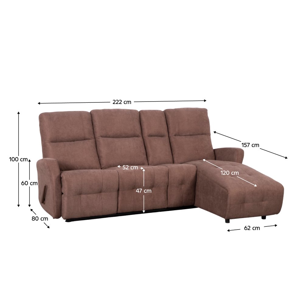 Materiál: látka/kov Oděruodolnost textilie podle testu Martindale: 20 000 oděrů Barva: hnědá Rozměry (ŠxHxV): 222x80x100 cm Výška sedu: 47 cm Hloubka sedu: 52 cm Výška područky: 60 cm Hloubka otomanu: 120 cm Šířka otomanu: 62 cm Nosnost: 100 kg Výplň: pružina falista+Pur pěna Pravé provedení Rohová…