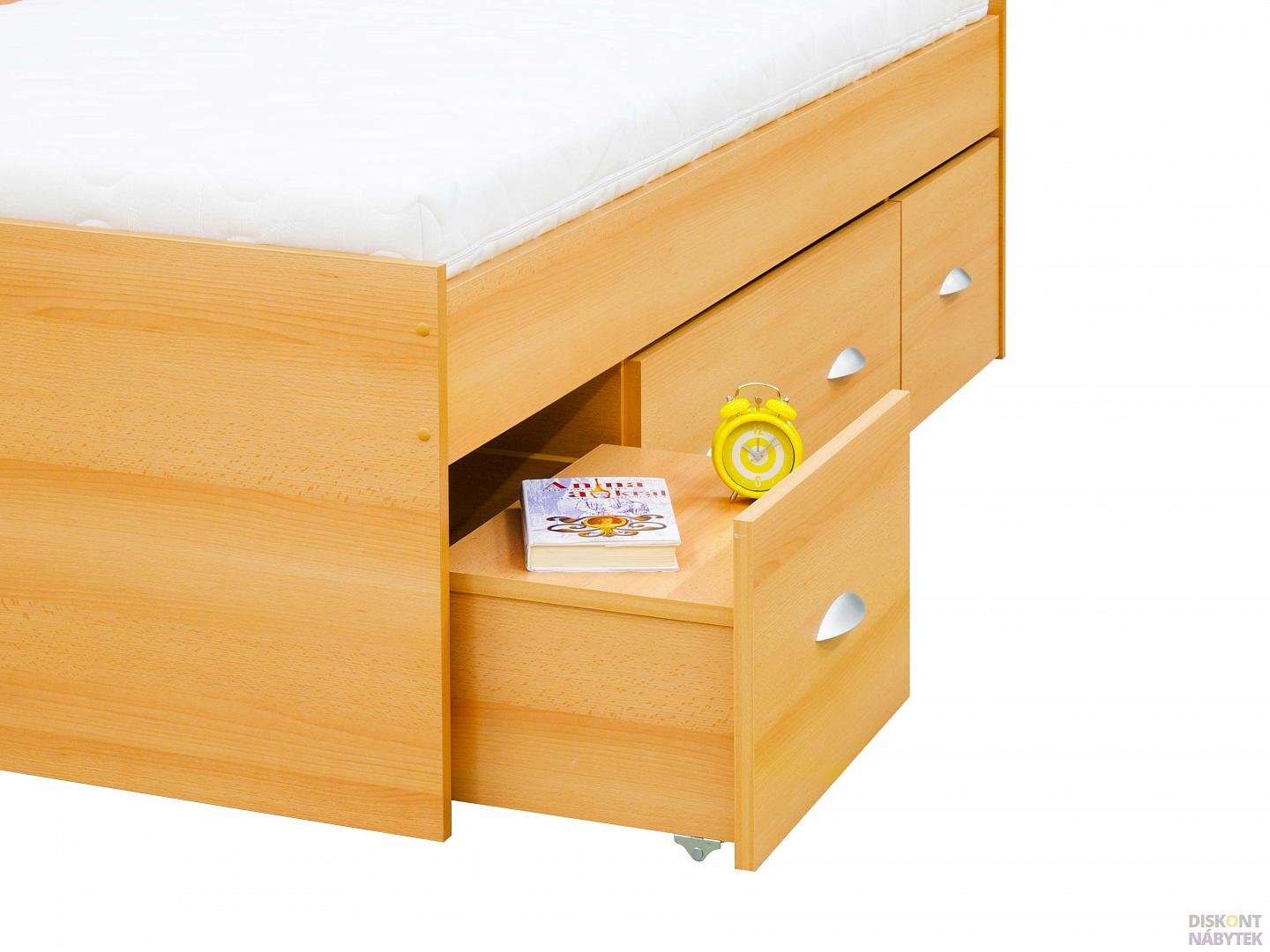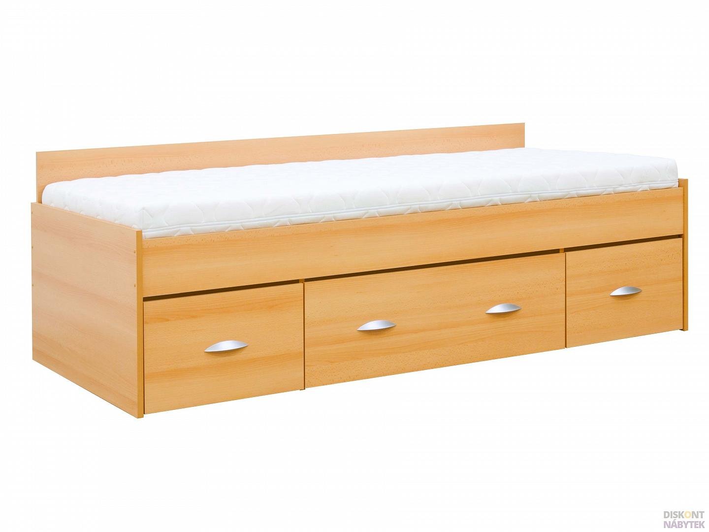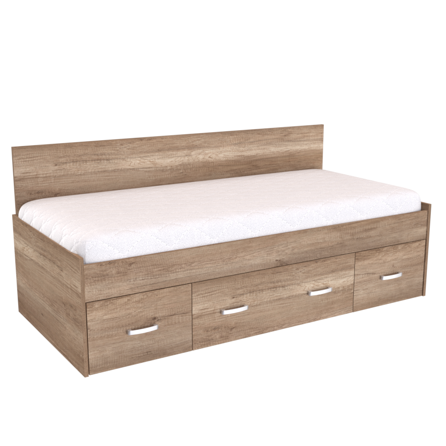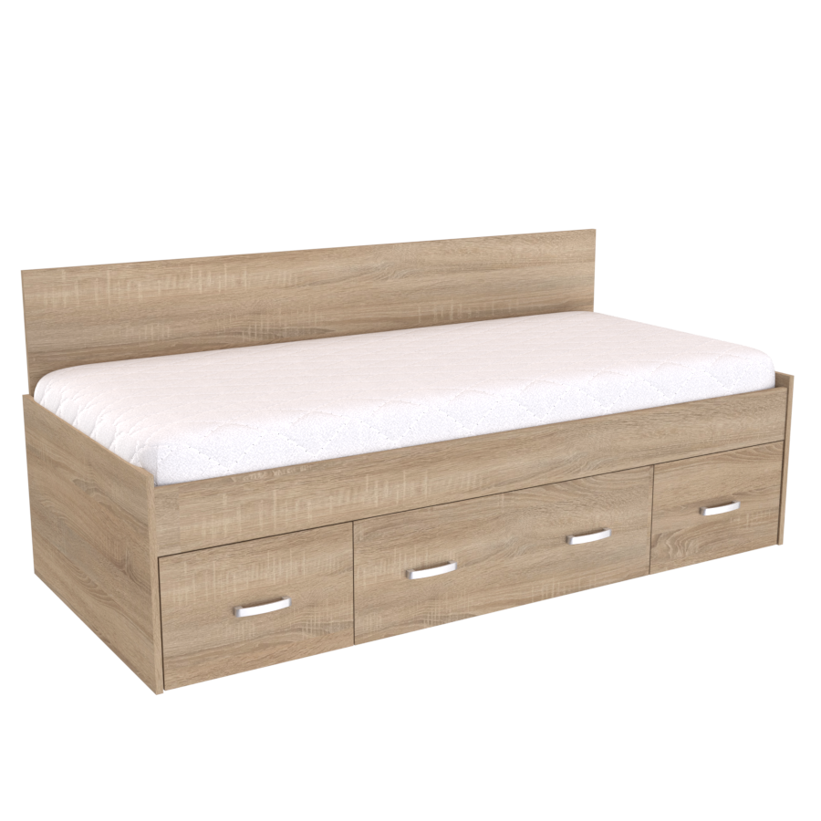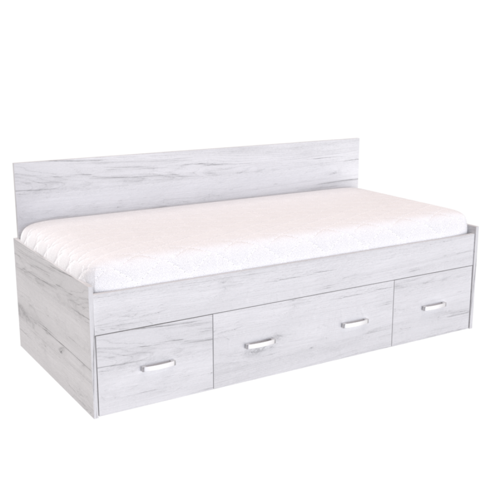 Jednolůžková postel NEMO 2 se zvýšeným zadním čelem a úchytkami Jony je oblíbeným typem jednolůžkové postele, která je vhodná nejen pro děti, ale i dospělé a to především díky své výšce. Svou oblibu získala nejen díky své ceně, ale také díky odkládací ploše v podobě zásuvek a spodní police pod lůžkem, kterou lze využít pro ukládání čehokoliv pro nás důležitého, čímž ušetříme peníze za pořizování nočního stolku vedle postele.