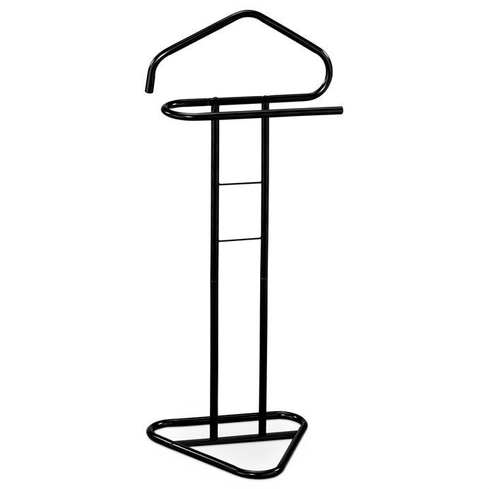Praktický němý sluha v minimalistickém designu. Konstrukce je z kovových trubek pr. 19 mm. Povrchová úprava je v černém matném práškovém laku. Výška 108 cm Vám umožní zavěšení oblečení i doplňků bez pomačkání. Nosnost stojanu jsou 4 kg, hmotnost necelé 2 kg. I proto je jednoduše přenositelný a lze ho umístit podle momentální potřeby i nálady. Stylem a jednoduchostí se hodí do jakéhokoli interiéru. Využití je nepřeberné, záleží jen na Vás.