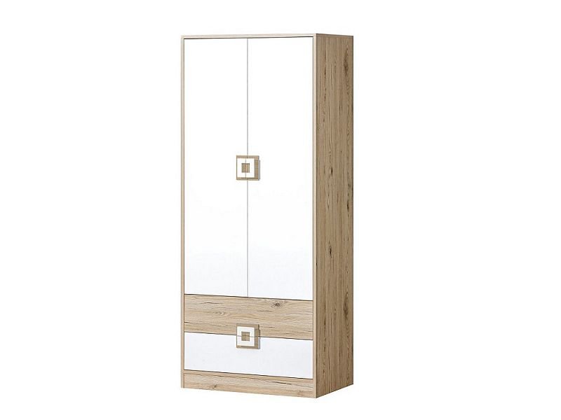 Šatní skříň Nikolas 1 je vyrobena z lamina ve světlých tónech bílá/dub jasný. Úchyty byly zvoleny v barvě bílé.,