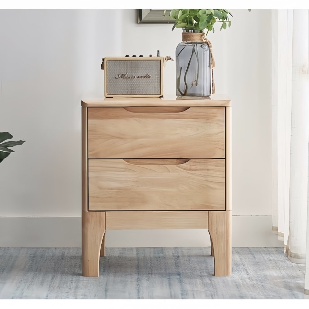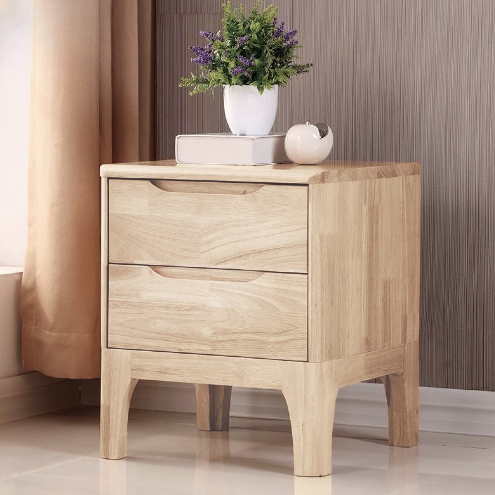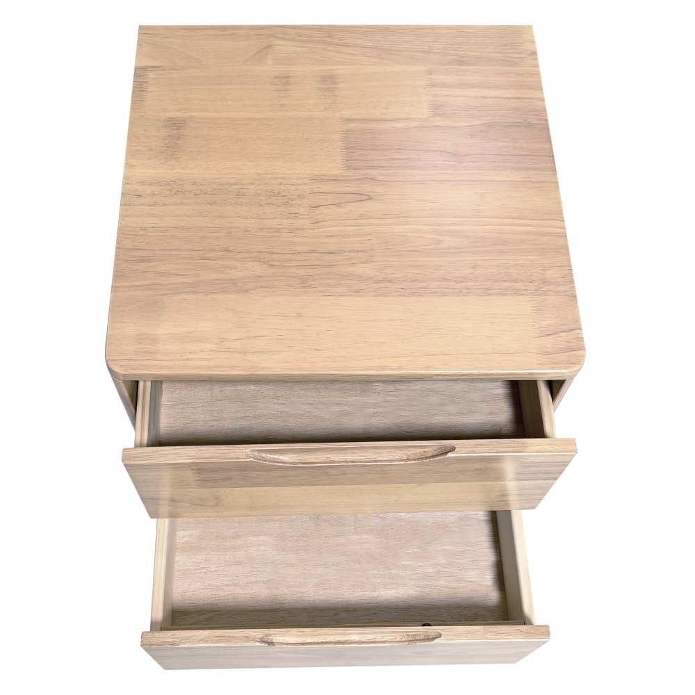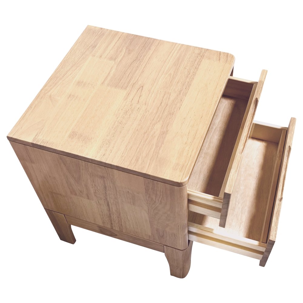 Disponuje dvěma zásuvkami, které pomohou s udržováním pořádku nebo mít věci, které potřebujete na dosah ruky. Vyroben je kombinací odolného a pevného kaučukového dřeva na rámu a nožičkách stolku az borovicového dřeva na šuplících. Vše v přírodním provedení. FERB neobsahuje klasické úchytky, avšak manipulaci se šuplíky usnadňují zafrézované úchytky. Postaven je na pevných nožičkách. Ideální nejen do ložnice, ale také do dětských či pokoj pro hosty.