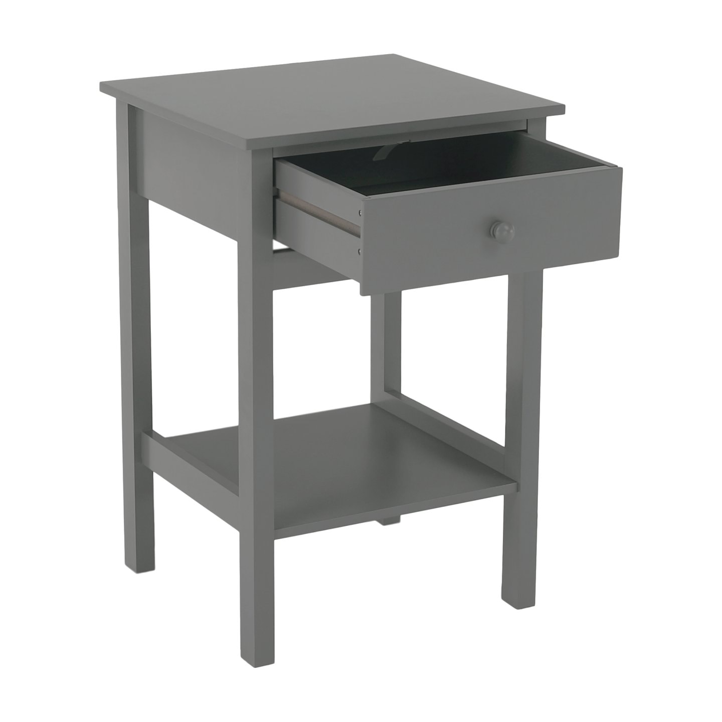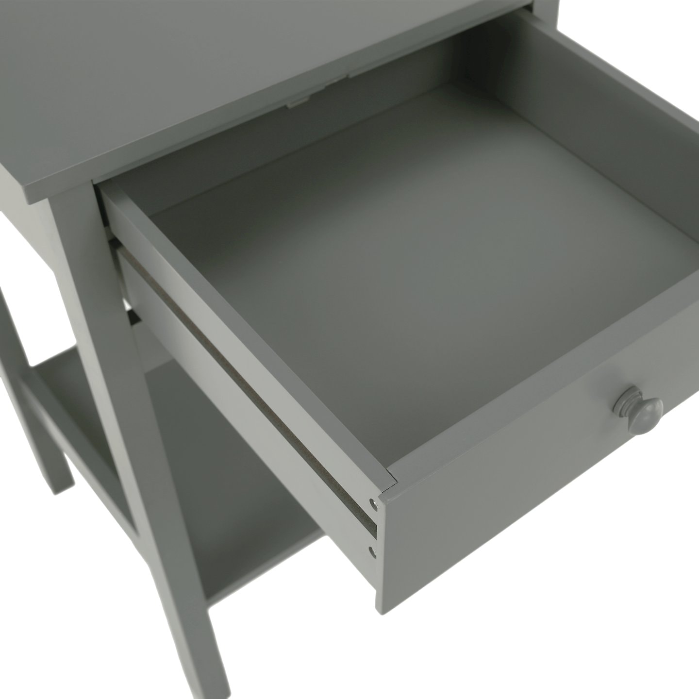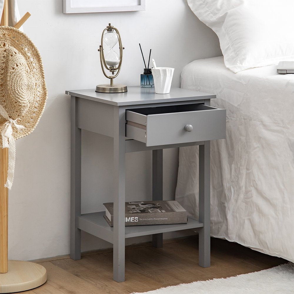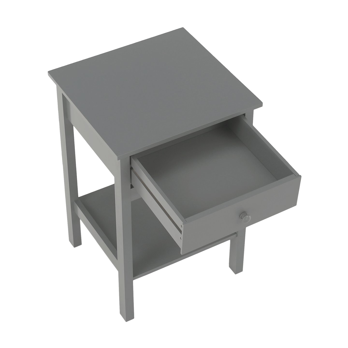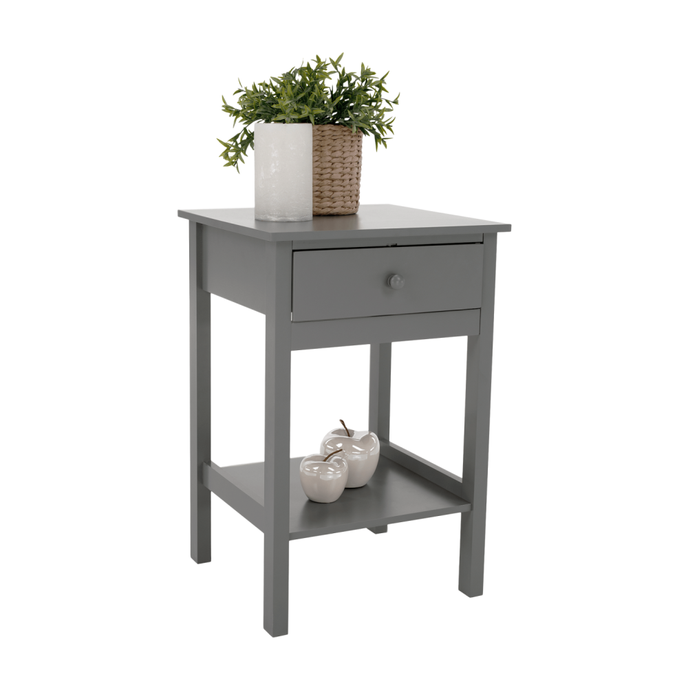 Využít jej můžete nejen v ložnici, ale také jako odkládací stolek vedle sedačky v obýváku. Poskytuje dostatečný prostor pro uskladnění menších předmětů, které potřebujete mít na dosah ruky. Jeho elegantní a jednoduchý design vdechne vaší ložnici jedinečnost. Šedé provedení stolku je vhodné do každého interiéru a snadno jej zkombinujete s ostatním nábytkem. Obsahuje jednu zásuvku a jednu poličku na které vynikne jakákoli pěkná dekorace. Noční stolek MALISE je zajisté ten správný doplněk pro vás.