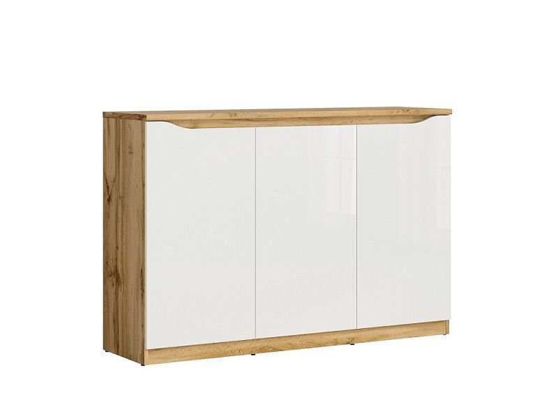 Kolekci Nuis si nepochybně oblíbí milovníci světlých interiérů v moderním stylu. Kombinace bílé lesklé a dubu wotan