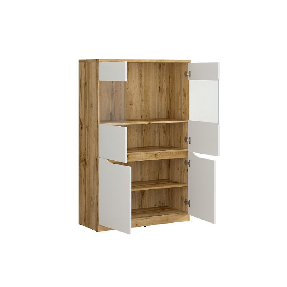 Barevné provedení této vitríny je dub wotan/bílý lesk.