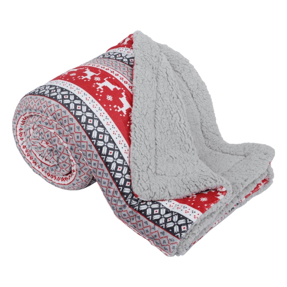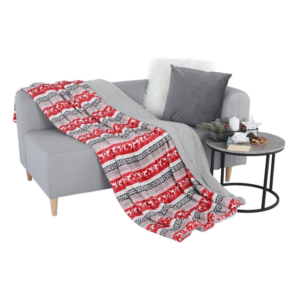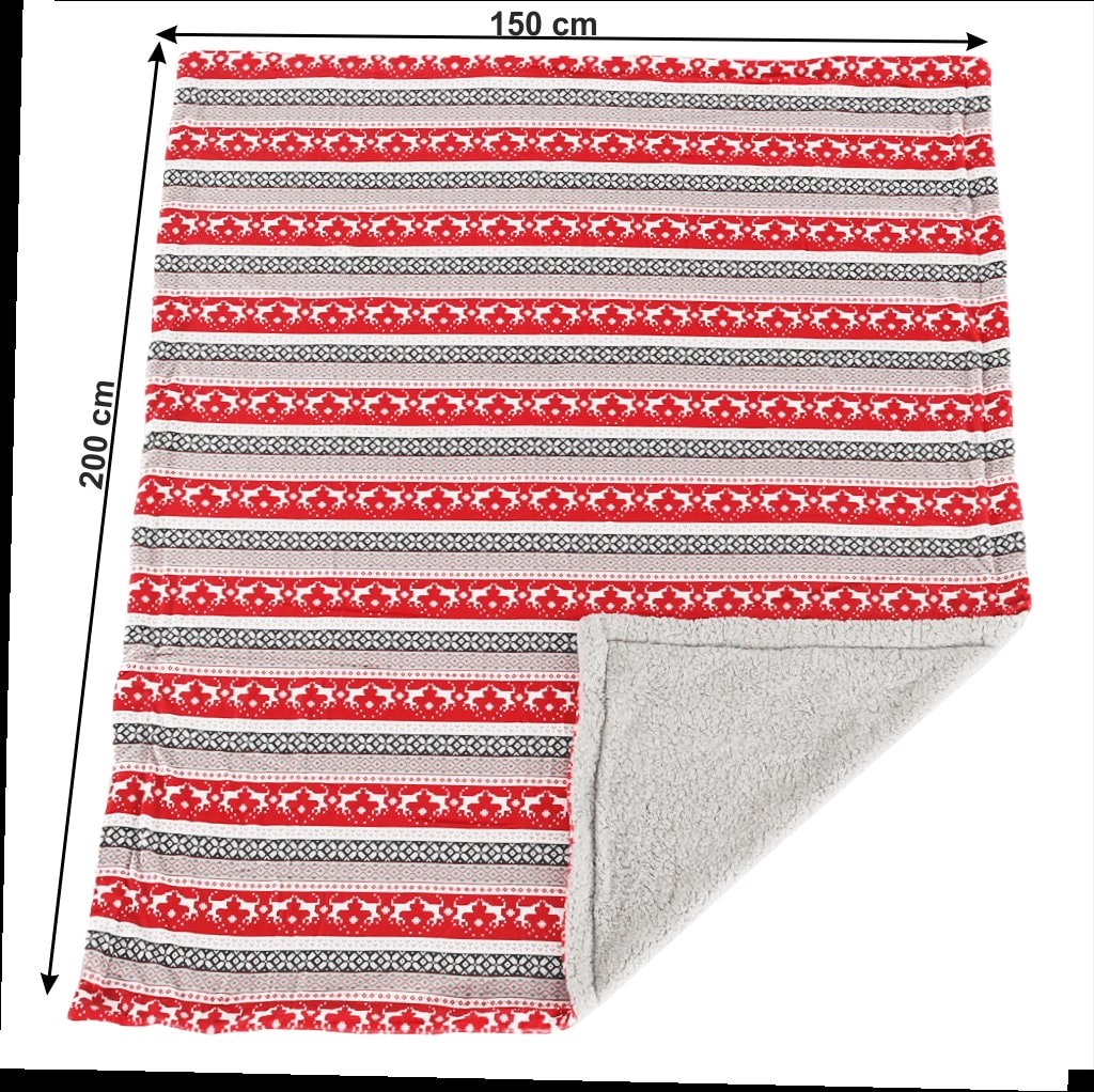 Oboustranná beránková deka, zimní motiv, 150x200, RENIFE