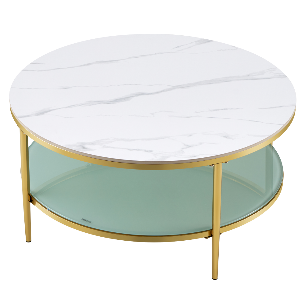 Konferenční stolek, světlý mramor/mléčná/gold chrom-zlatý, ENION 2 NEW