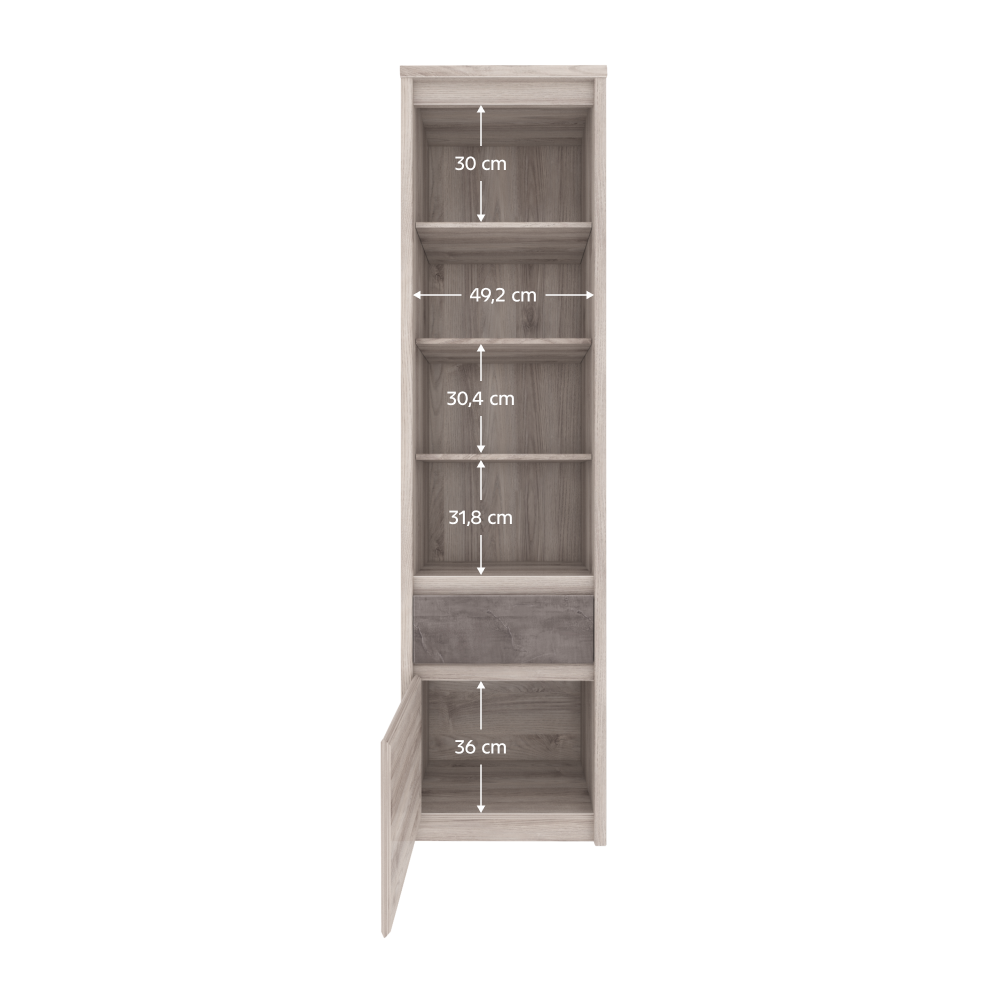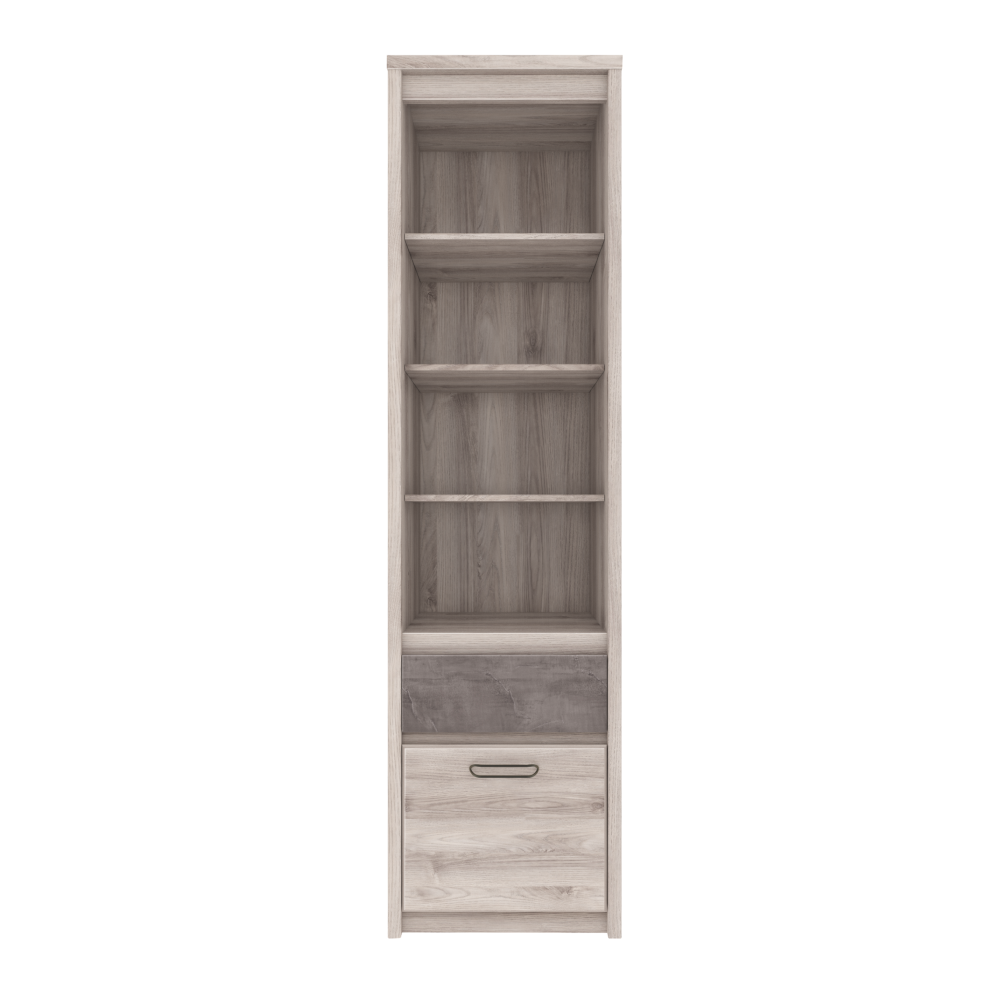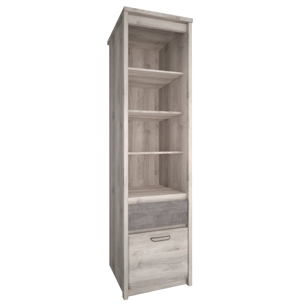Otevřený regál 1D1S JESI je výjimečným kouskem nábytku díky svému multifunkčnímu využití. Jeho součástí je otevřený úložný prostor s policemi, šuplík a jednodvéřová skříňka. Poskytuje dostatek úložného prostoru.