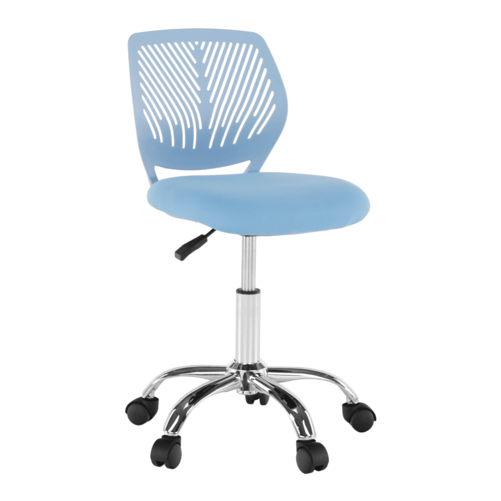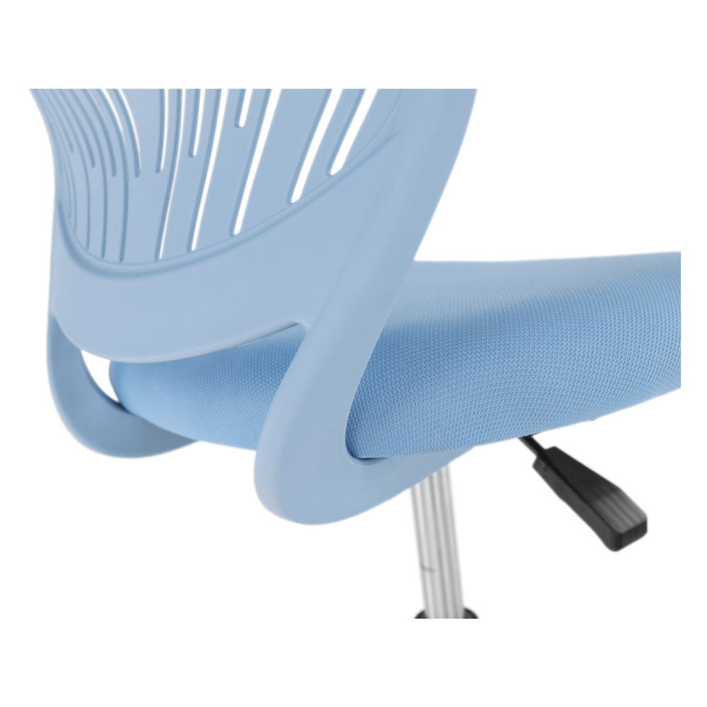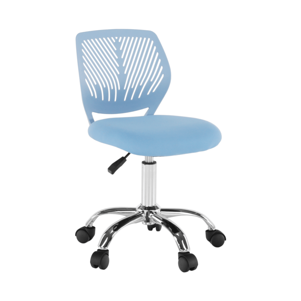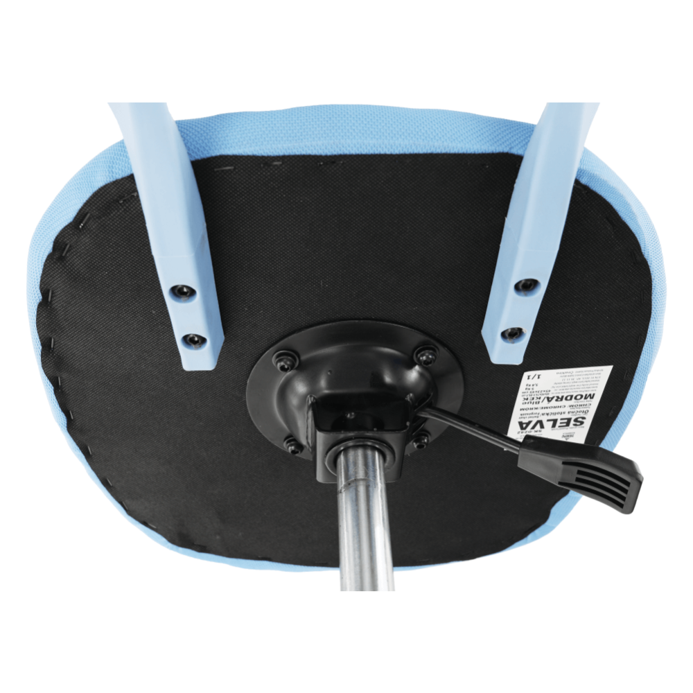 Představujeme otočnou židli SELVA, na které se vám bude sedět pohodlně a práce či školní úkoly nebudou žádný problém. Vyrobena je z plastu a kovu, sedák je čalouněný polyesterem v modré barvě. Plastové opěradlo je perforované, atypický tvar opěradla zlepšuje náš dojem ze židle. Pomocí páčky pod sedadlem si umíte nastavit výšku sedu, která vám bude nejvíce vyhovovat. Vychutnejte si pohodlí a také práce bude hotová. Potěšte sebe, žáka či studenta novou kancelářskou židlí.
