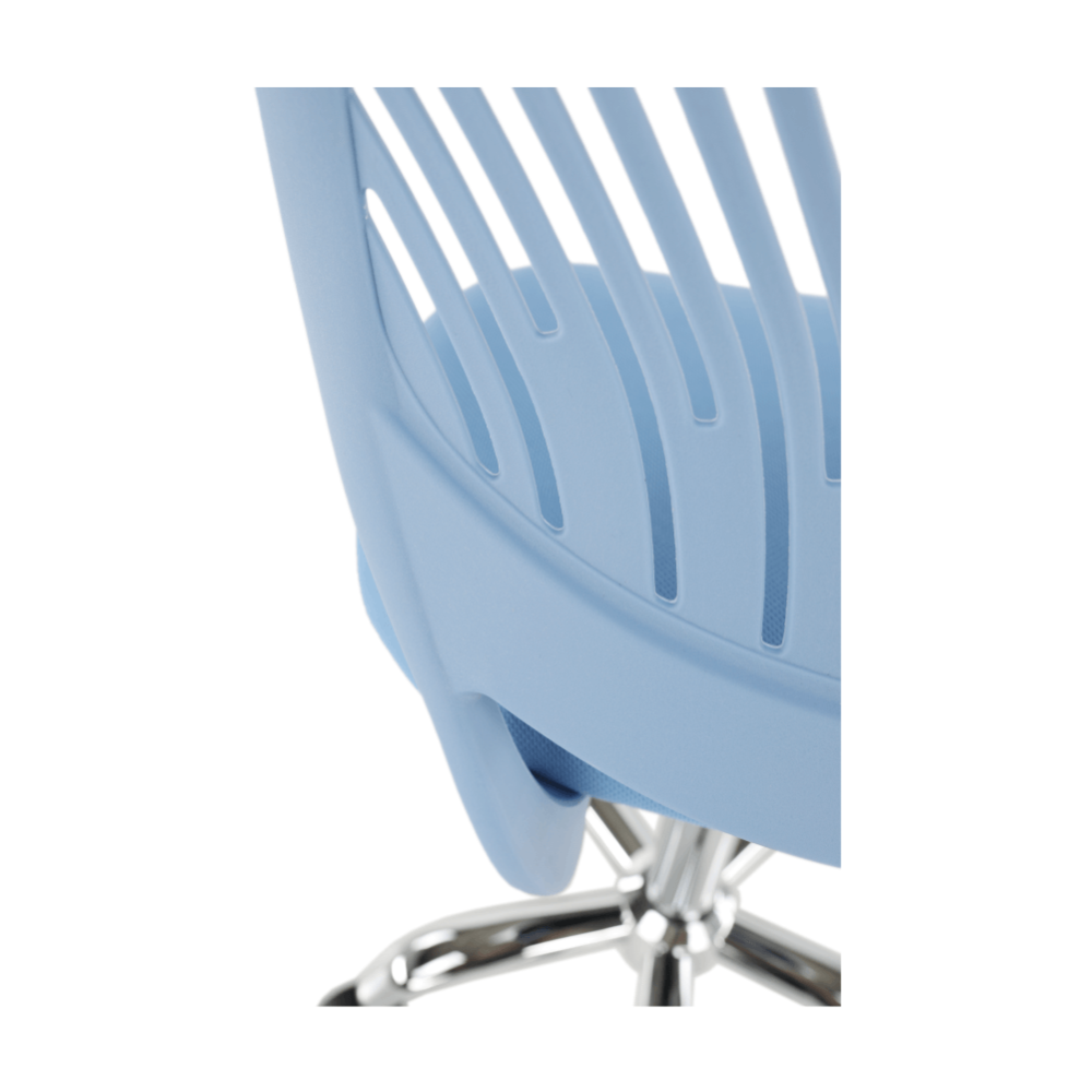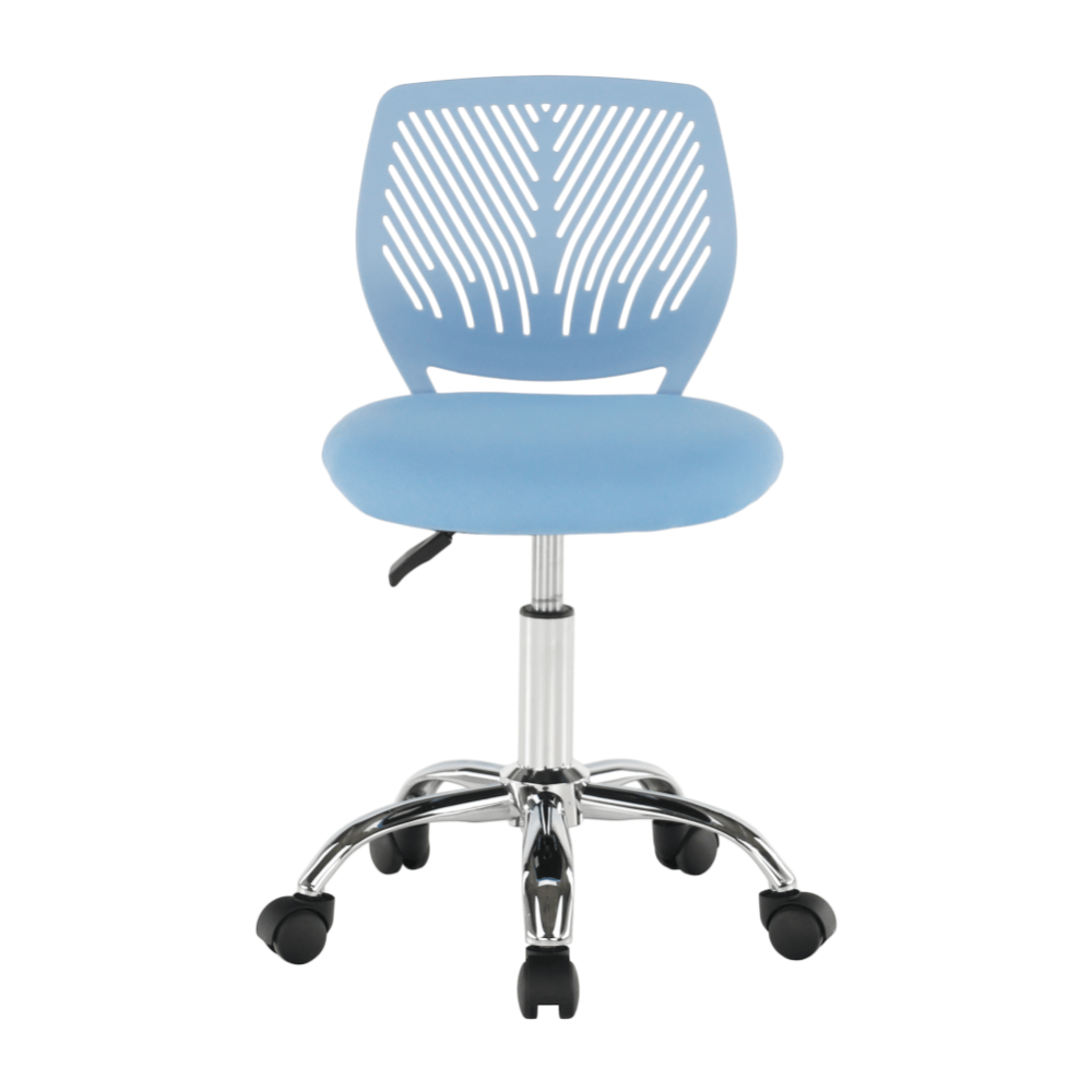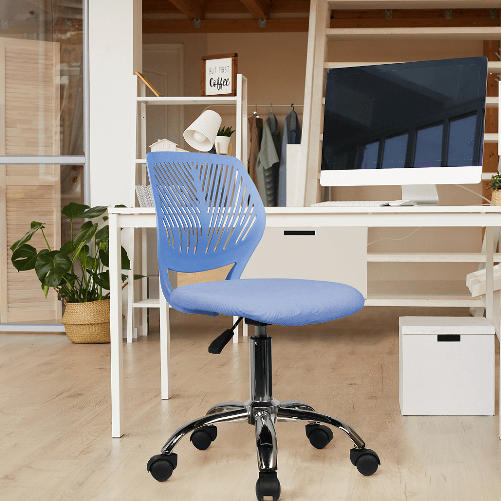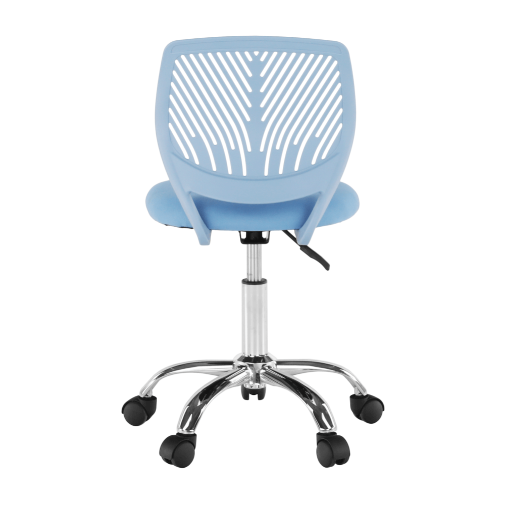 Představujeme otočnou židli SELVA, na které se vám bude sedět pohodlně a práce či školní úkoly nebudou žádný problém. Vyrobena je z plastu a kovu, sedák je čalouněný polyesterem v modré barvě. Plastové opěradlo je perforované, atypický tvar opěradla zlepšuje náš dojem ze židle. Pomocí páčky pod sedadlem si umíte nastavit výšku sedu, která vám bude nejvíce vyhovovat. Vychutnejte si pohodlí a také práce bude hotová. Potěšte sebe, žáka či studenta novou kancelářskou židlí.