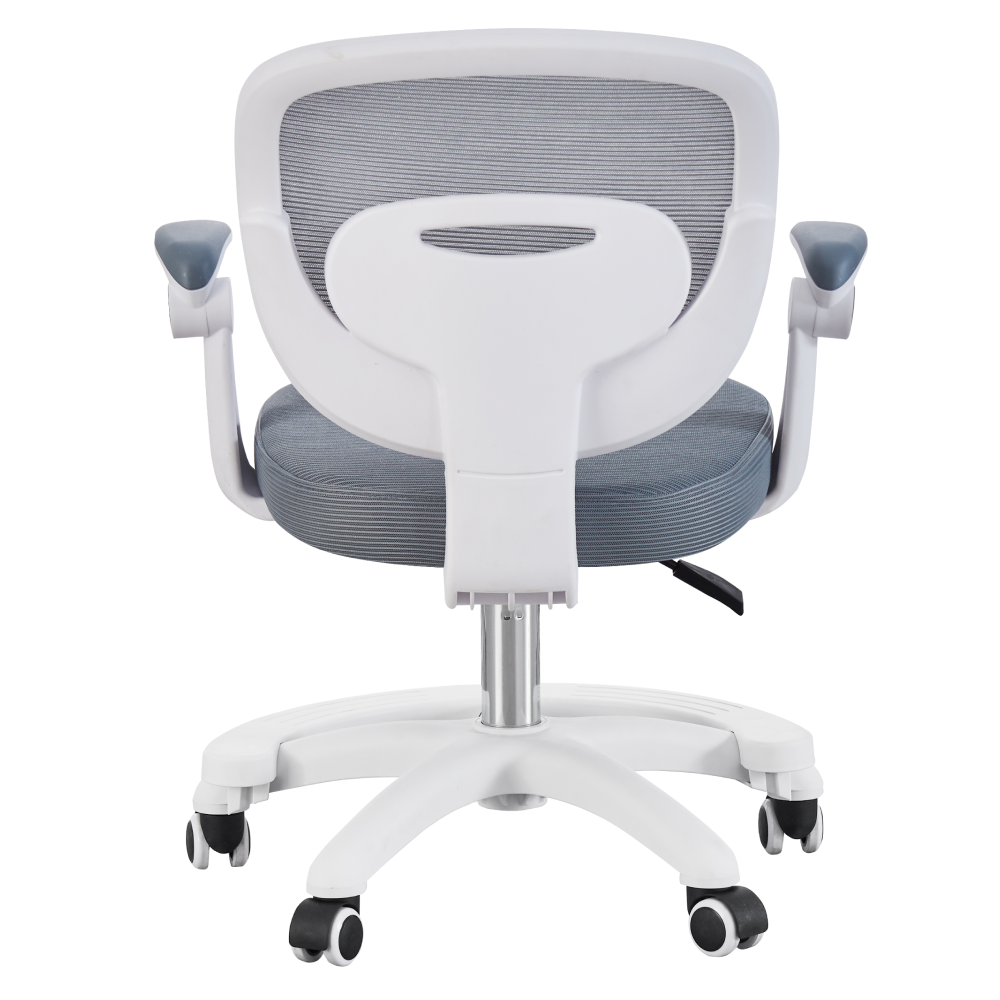 Zaujme svým skvělým vzhledem a vyniká praktickými vlastnostmi. Díky možnosti nastavení výšky sedu si židličku jednoduše přizpůsobíte podle svých potřeb vašeho dítěte, zatímco podstava slouží jako podnožka na nohy. Čalouněné sklápěcí opěrky na ruce poskytují pohodlnou podporu při práci a zároveň usnadňují zasunutí židle pod stůl, čímž šetří místo. Potah sedáku a opěrky zad je vyroben ze síťoviny v šedém barevném provedení. Podstava je vyrobena z bílého plastu a doplněna je o univerzální kolečka, která jsou vhodná na tvrdé i měkké podlahy, což zajišťuje plynulý pohyb. Židle TRIXI nabízí nejen moderní design, ale také bezpečnost a komfort, což ji činí ideální pro každodenní používání.