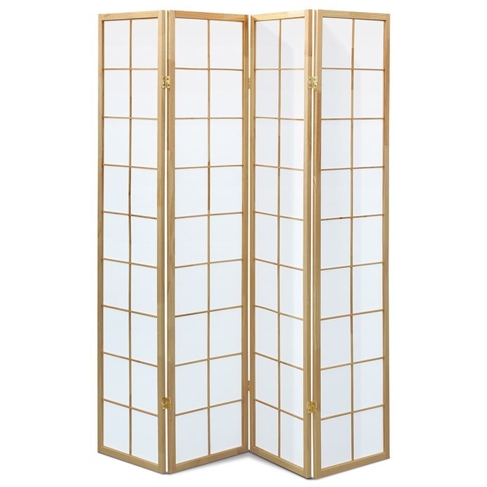 4dílný volně stojící paraván s konstrukcí z masivního smrkového dřeva v přírodní barvě a výplní z bílé netkané textilie. Plní nejen funkci okrasnou, ale také praktickou. Lze jej použít jako zástěnu nebo diskrétní i optickou dělící příčku nejen v bytě, ale i v komerčních prostorách. Díky skládací konstrukci a celkové nízké hmotnosti jej lze bez problémů přemísťovat a manipulovat s ním.