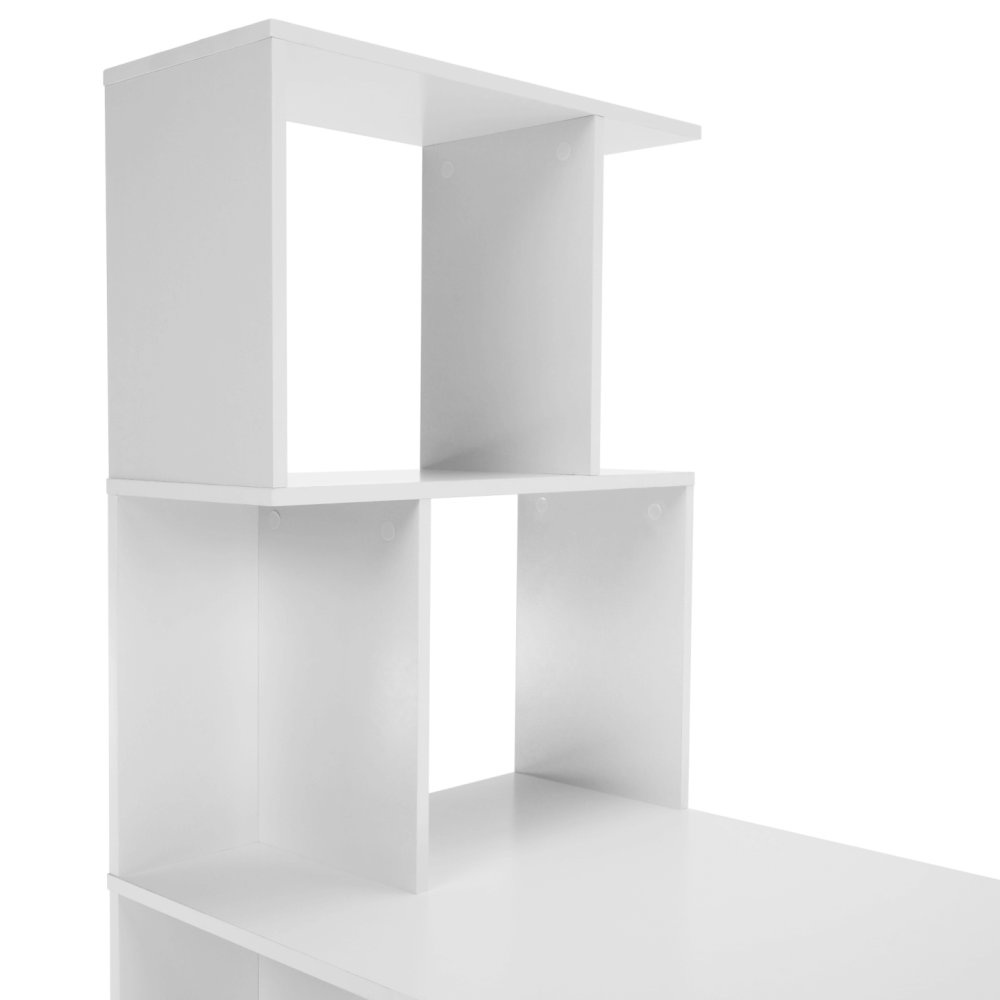 Praktický PC stůl s regálem FLOKI NEW Materiál: DTD laminovaná Barva: bílá Rozměry (ŠxHxV): 120x60x150 cm Tloušťka materiálu: 15 mm Dodávané v demontu.