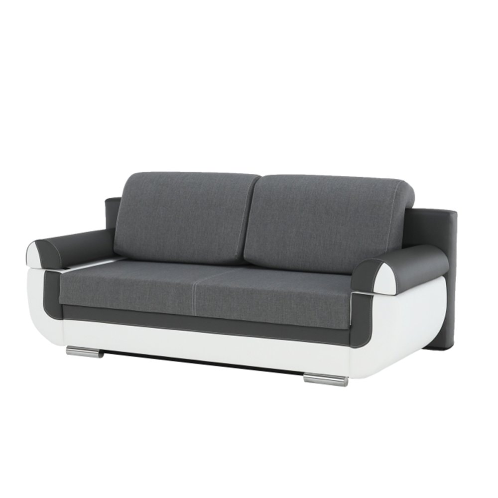 Rozkládací pohovka s úložným prostorem, provedení: ekokůže bílá + šedá / látka Hugo šedá 11. Oděruodolnost textilie podle testu Martindale: 80 000 oděrek Oděruodolnost ekokůže podle testu Martindale: 100 000 oděrek Má kvalitní benoelové se. Rozměry ŠxVxH: 204x89x90 cm, Plocha na spaní:…