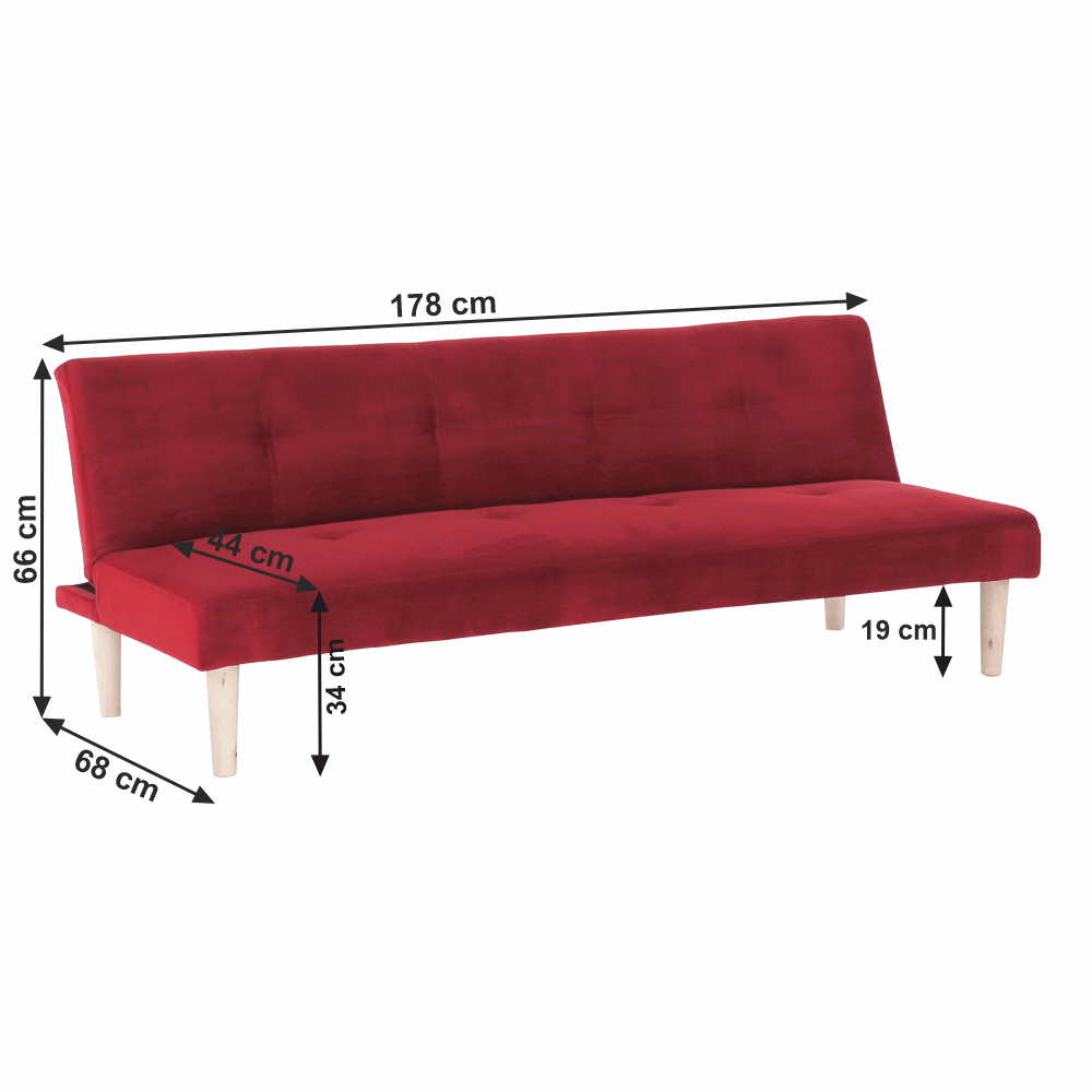 Materiál čalounění: Velvet látka Oděruodolnost textilie podle testu Martindale: 80 000 oděrek Barva čalounění: bordó Materiál nohy: dřevo Barva nohy: dub Rozměry (ŠxHxV): 178x68x66 cm rozkládací Plocha na spaní (ŠxHxV): 178x84x34 cm Výška sedu: 34 cm Hloubka sedu: 44 cm moderní design Molitanová…