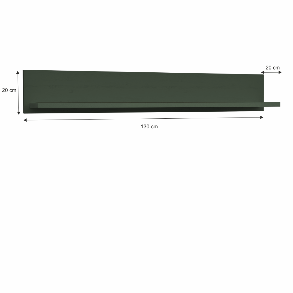 Materiál: DTD laminovaná Barva: zelená Rozměry (ŠxHxV): 130x20x20 cm Tloušťka materiálu korpus: 15 mm Otevřený úložný prostor Dodávané v demontu.