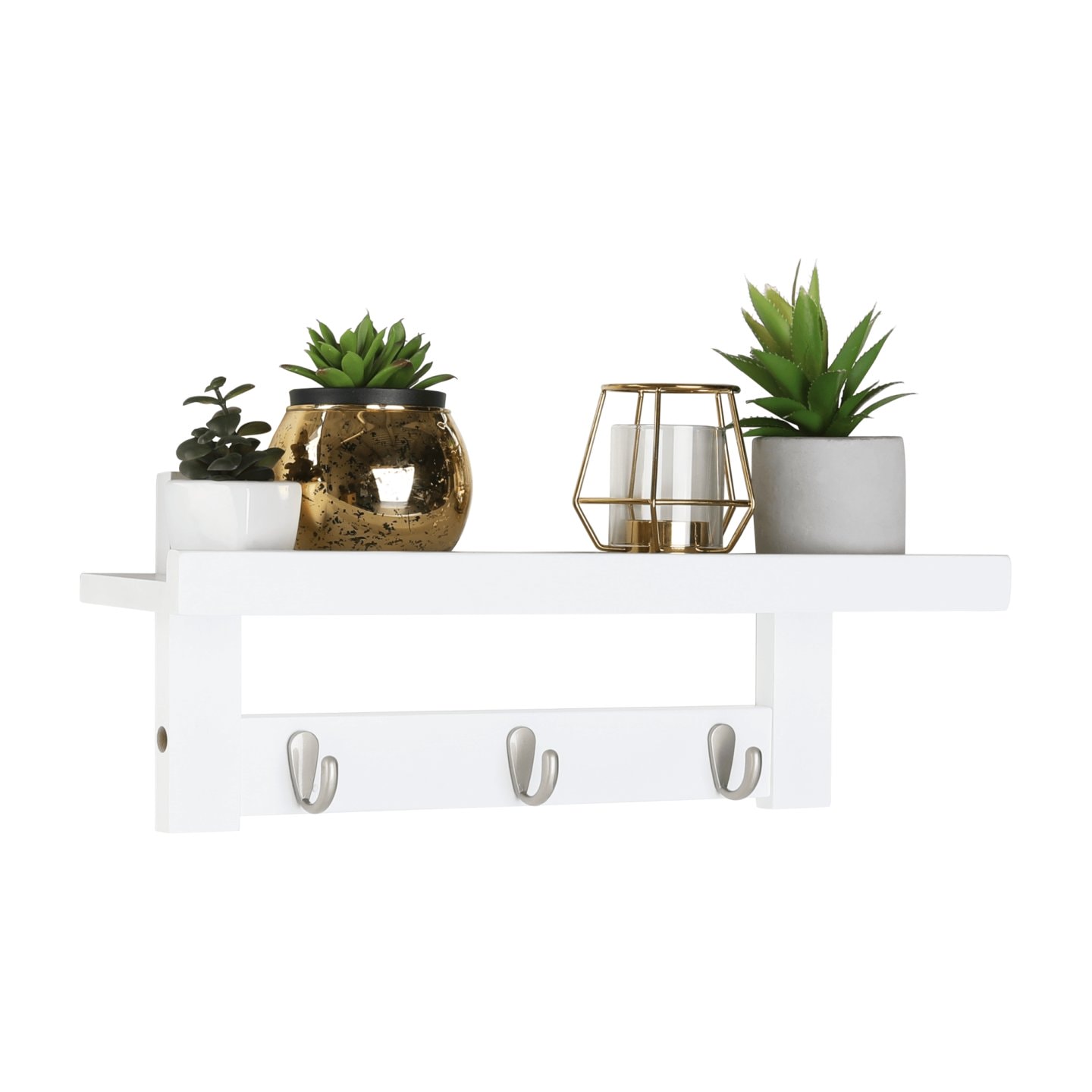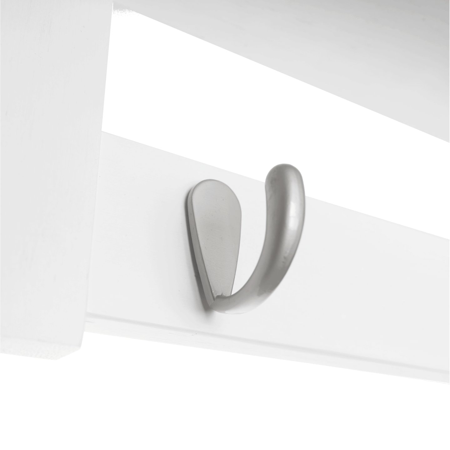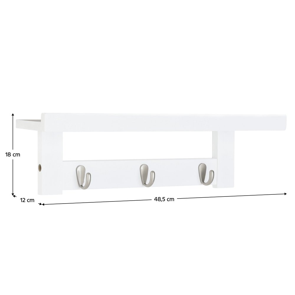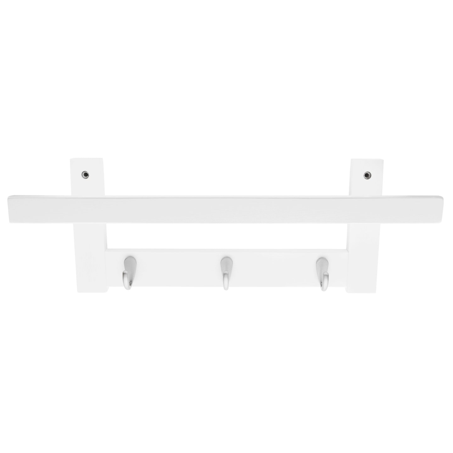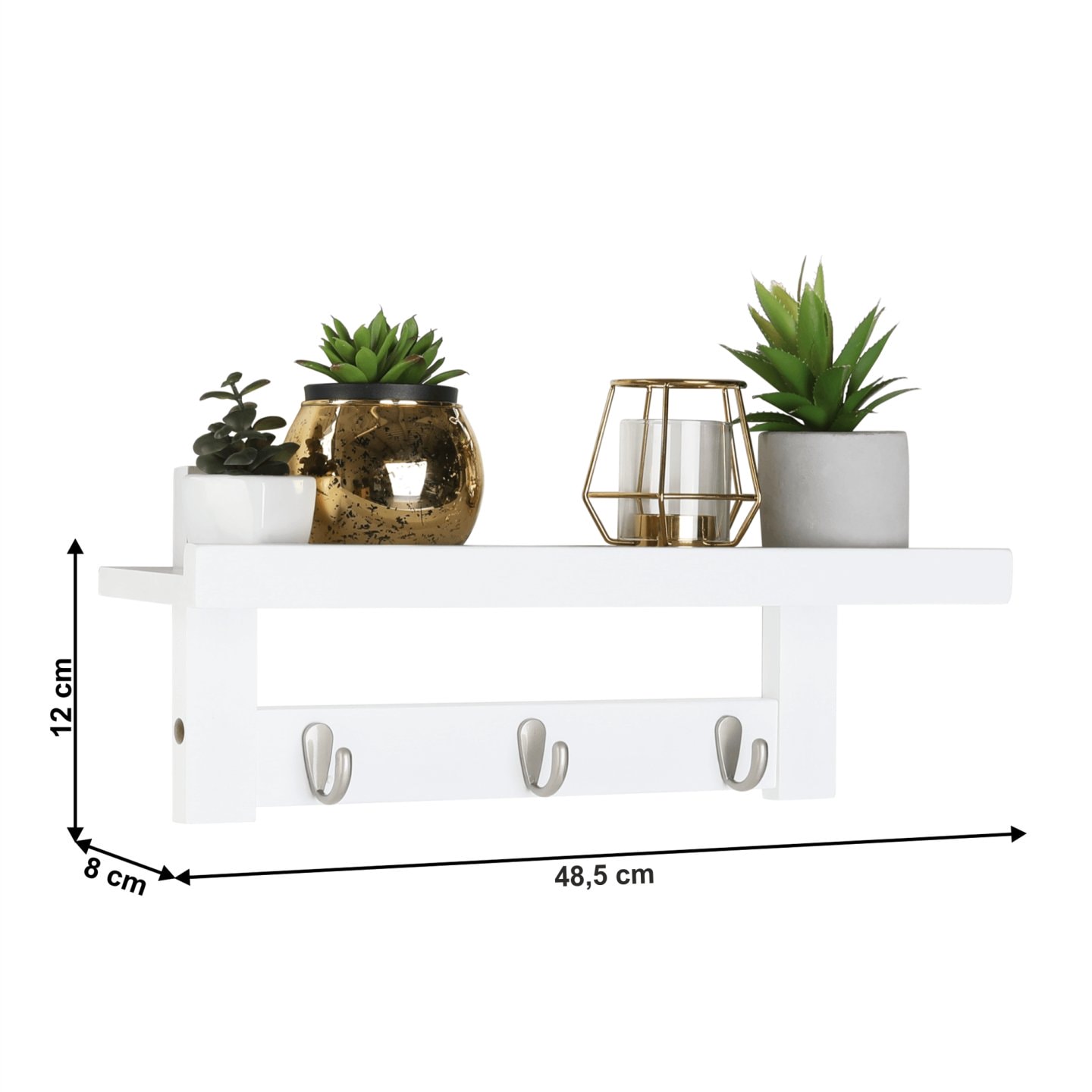 Materiál: bambus lakovaný / ocel Barva: bílá Rozměry (ŠxHxV): 48,5x8x12 cm Tři háčky Police Nosnost: 10 kg Vhodná do koupelny a předsíně