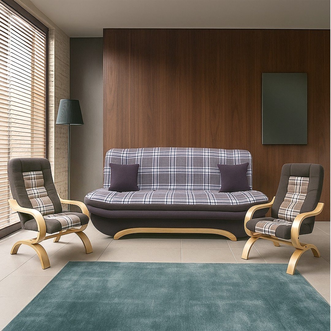 Pohovka PONTON je potažená látkovou kombinací Muna 7/Lobox 1 (hnědá/béžová) s retro károvaným designem.