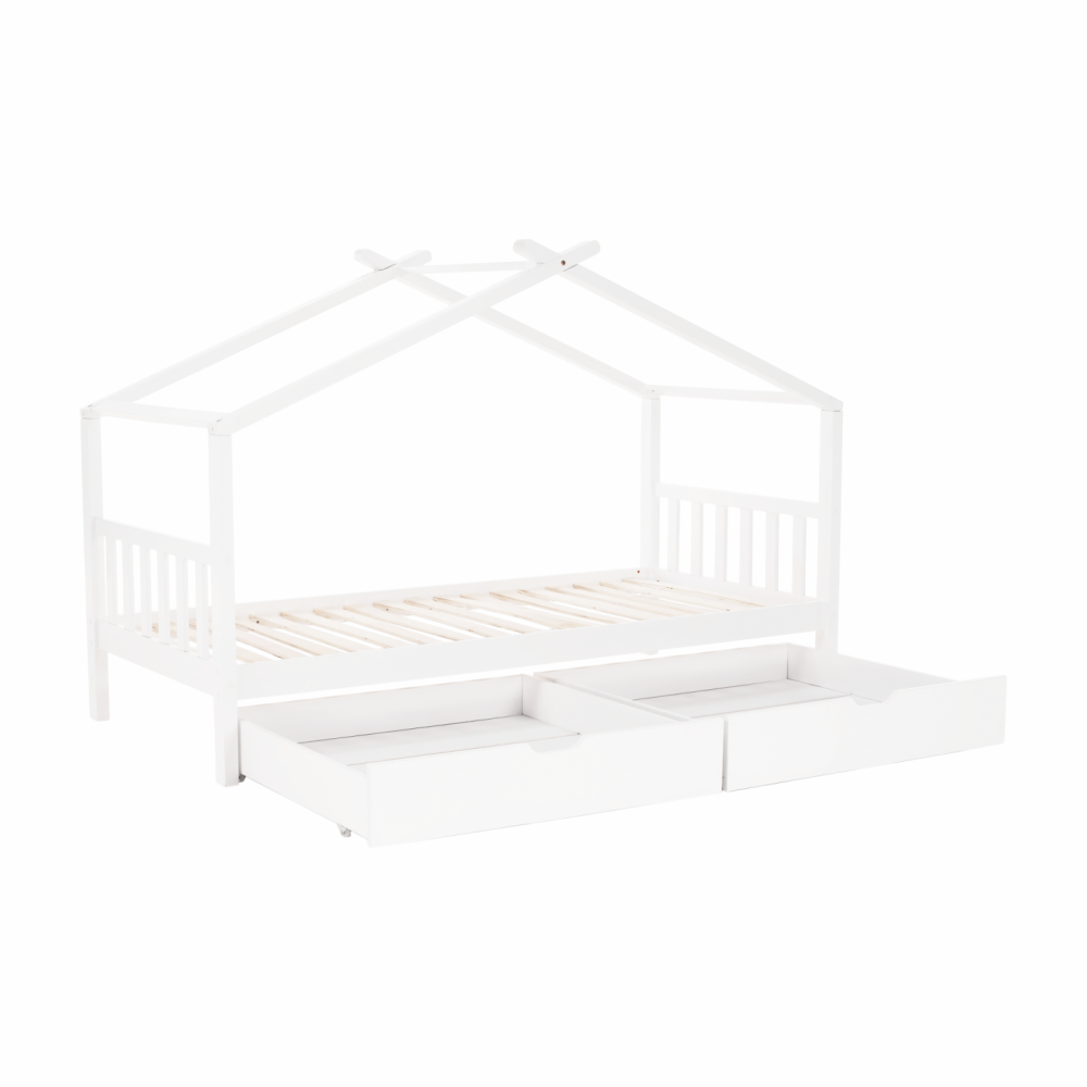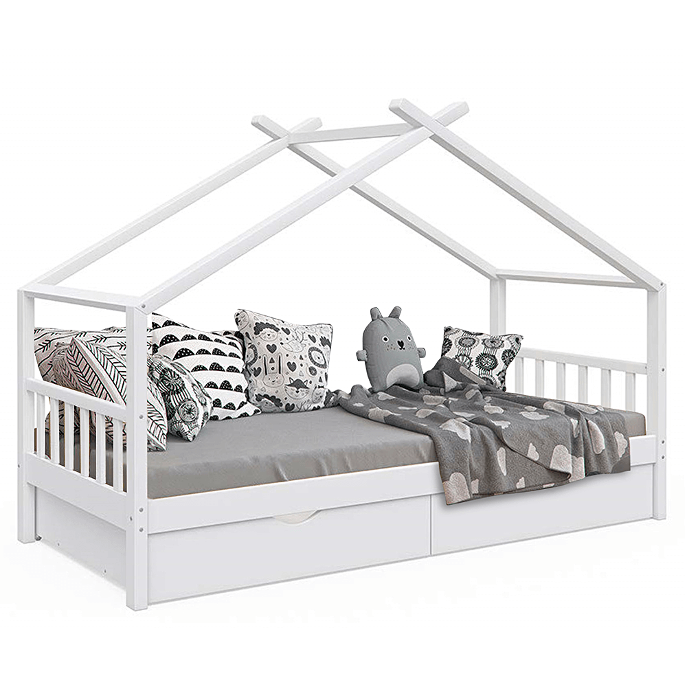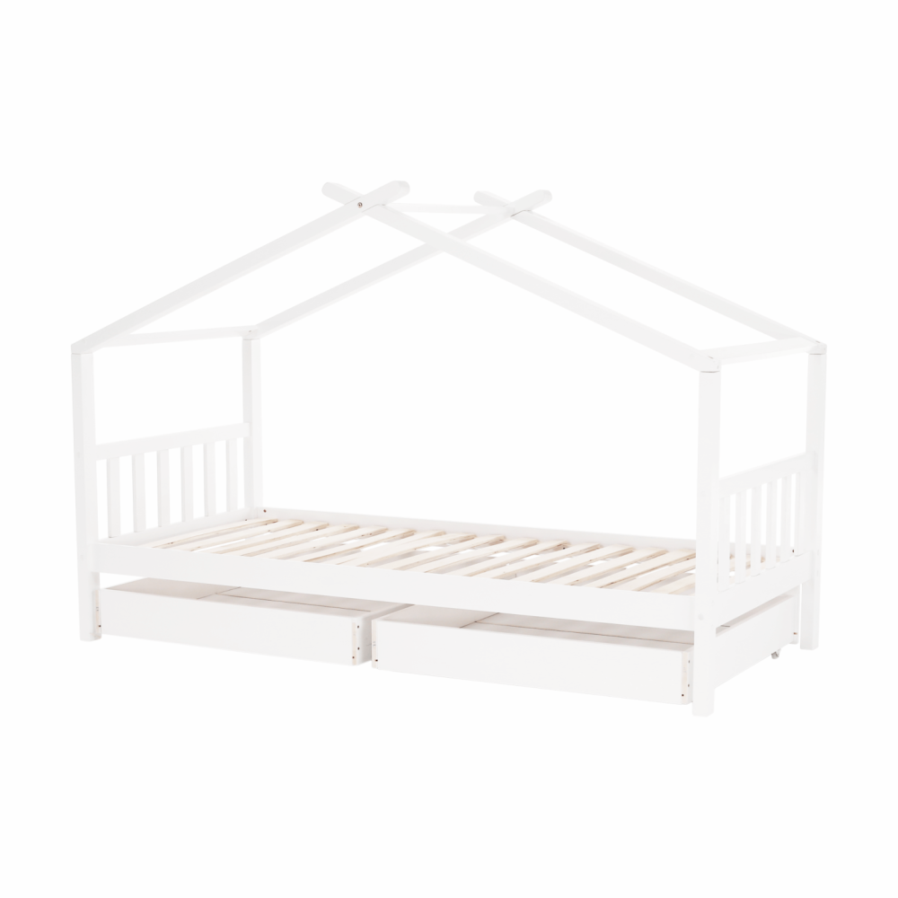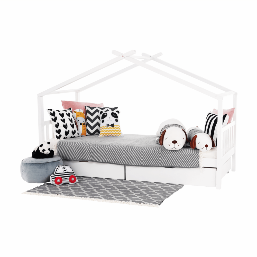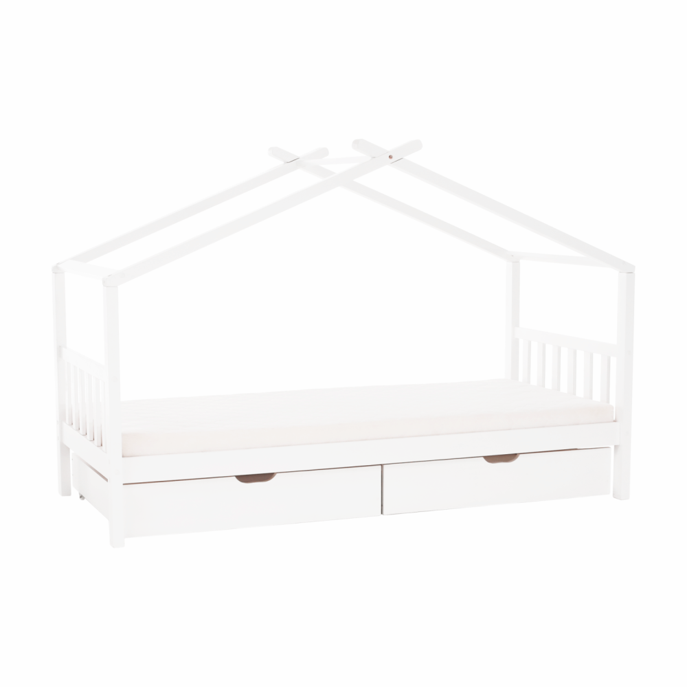 Její vzdušný vzhled a domečkové provedení vytvoří ideální místo pro množství dětských her. S touto kráskou si vaše dítě bude rozvíjet fantazii a získá mnoho dovedností, na které přijde samo při všech těch dobrodružstvích. Stabilitu a trvanlivost zaručuje borovicový masiv a bílé provedení prostě zakomponujete do každého dětského pokojíčku. Dva zásuvné kontejnery využijete na odkládání drobností, ale i věci, na kterých mu záleží.