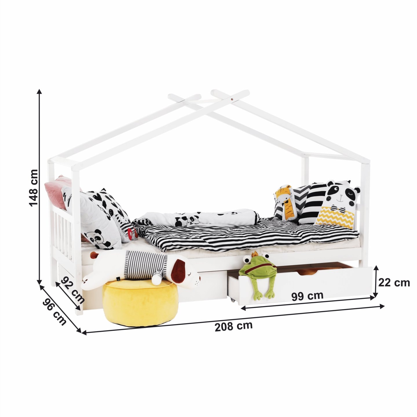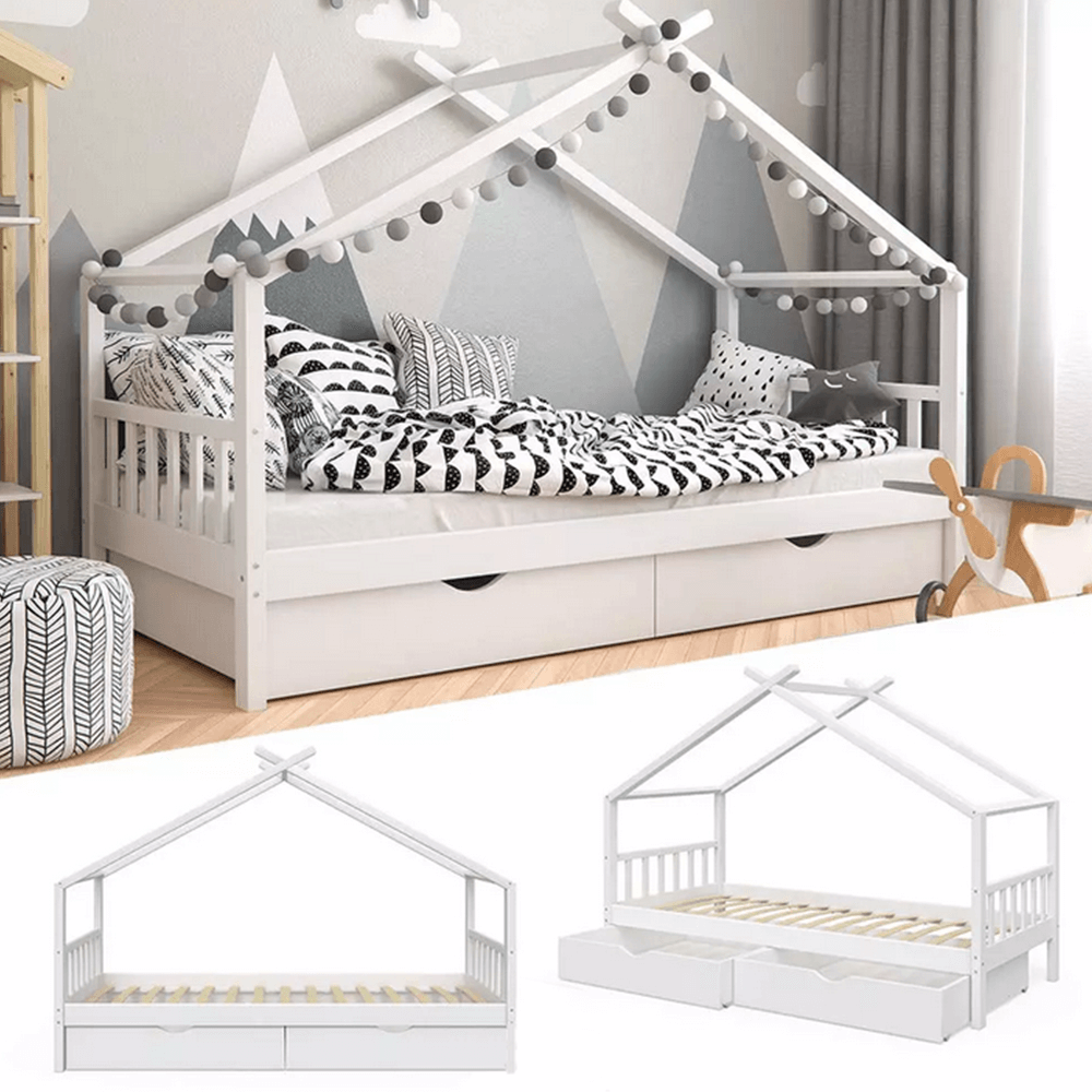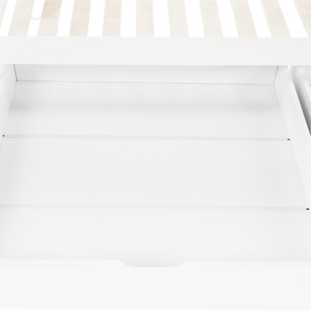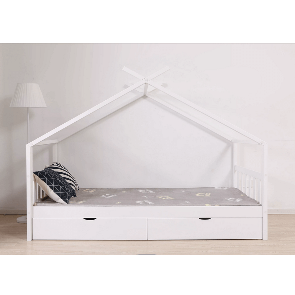Její vzdušný vzhled a domečkové provedení vytvoří ideální místo pro množství dětských her. S touto kráskou si vaše dítě bude rozvíjet fantazii a získá mnoho dovedností, na které přijde samo při všech těch dobrodružstvích. Stabilitu a trvanlivost zaručuje borovicový masiv a bílé provedení prostě zakomponujete do každého dětského pokojíčku. Dva zásuvné kontejnery využijete na odkládání drobností, ale i věci, na kterých mu záleží.