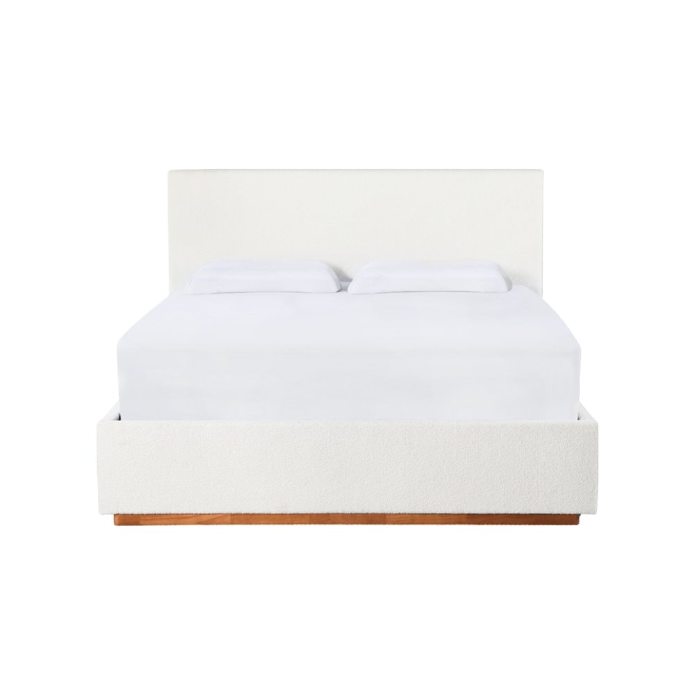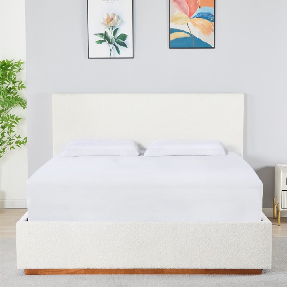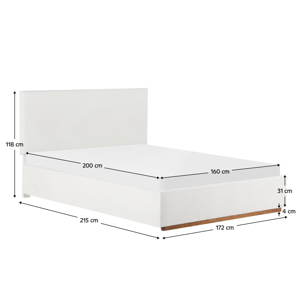 NUVOLA je postel, která okamžitě upoutá svým jemným a zároveň výrazným vzhledem. Její čalounění z trendové Bouclé látky v čisté bílé barvě působí měkce, elegantně a příjemně na dotek, díky čemuž vnese do vaší ložnice pocit vzdušnosti a klidu. Konstrukce je vyrobena z kombinace MDF, překližky a kovových částí. Za designově čistými liniemi se skrývá praktické řešení v podobě výklopného lamelového roštu, pod kterým naleznete úložný prostor na vše, co chcete mít uklizeno a zároveň vždy po ruce. Dodávána bez matrace. Doporučujeme zakoupit matraci o rozměru 160x200 cm z naší nabídky. Postel NUVOLA je elegantním a výrazným kouskem, který upoutá pozornost hned na první pohled a svým komfortem si vás získá při každém použití.
