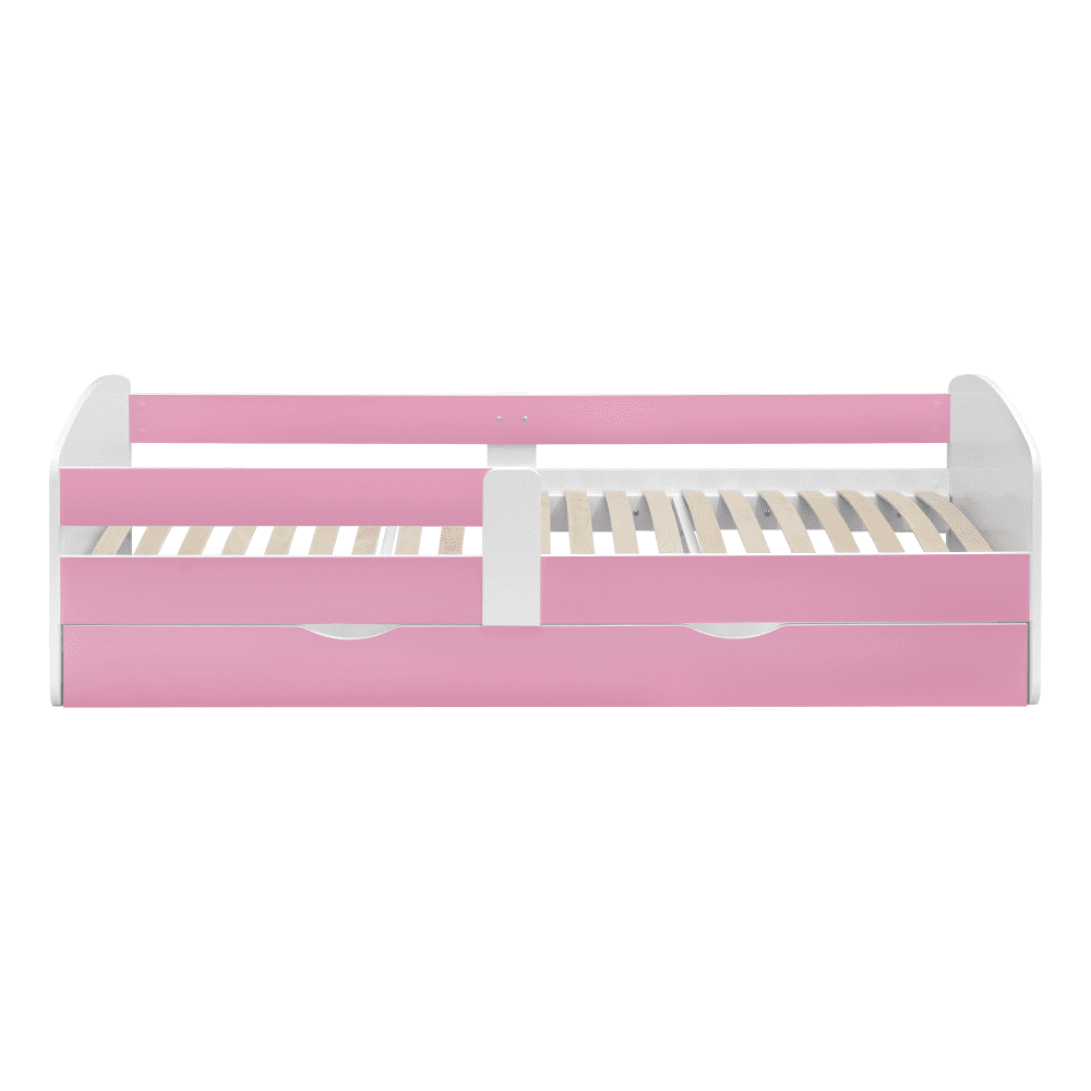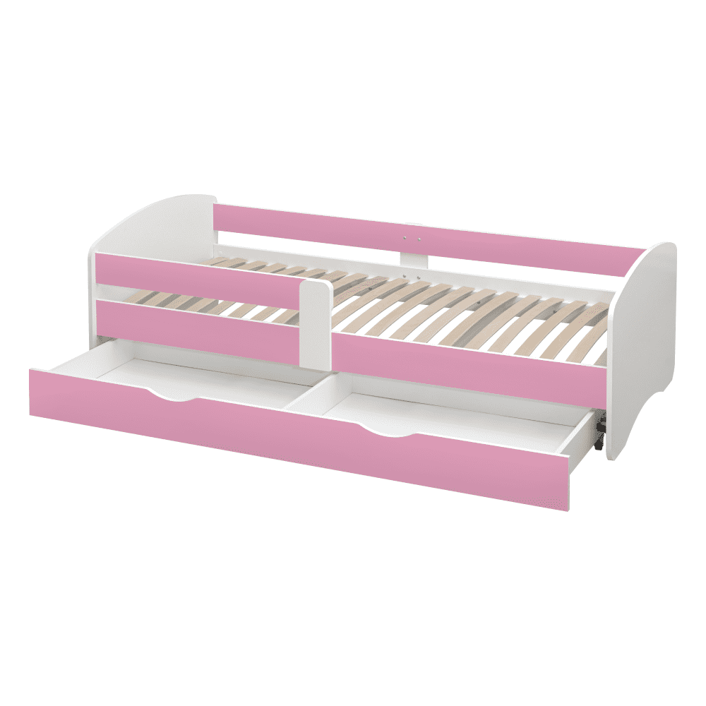 Postel s roštem a úložným prostorem 80x160, bílá/růžová, COCOLINO