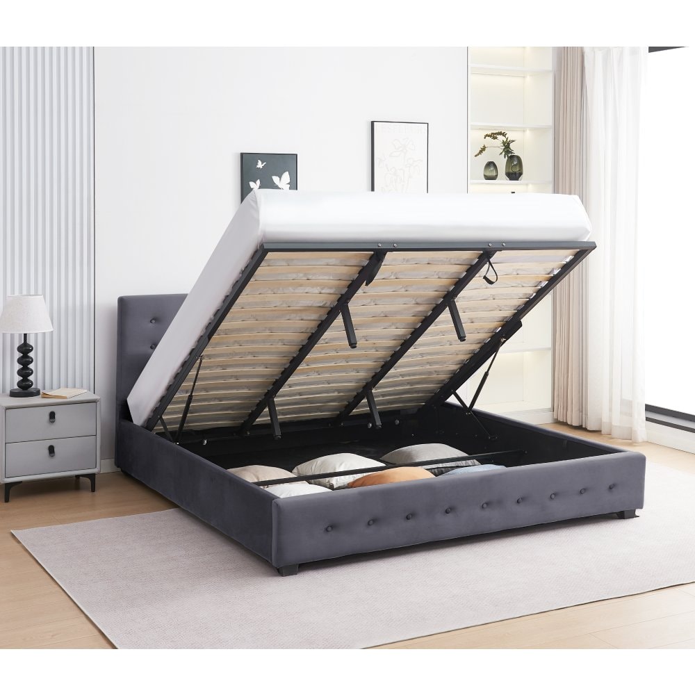 Postel s úložným prostorem, 160x200, šedá, MINDY