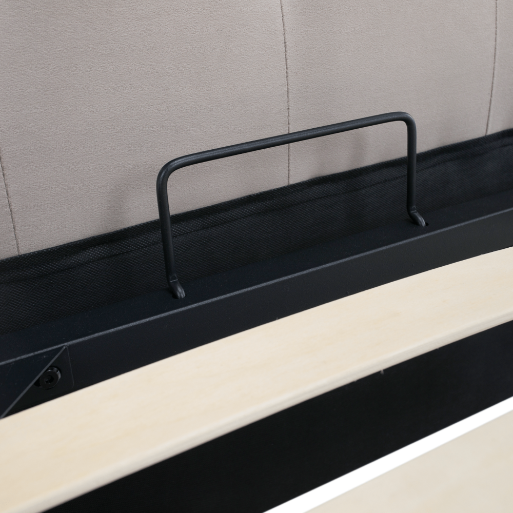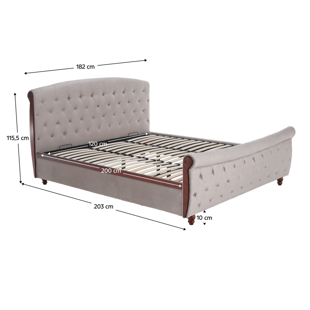 Nechte se hýčkat luxusem a pohodlím, které vám nabízí manželská postel BARETO, a vytvořte si z své ložnice útulné a stylové místo, kde si vždy dopřejete kvalitní odpočinek. Čalouněná je kvalitní Velvet látkou v sofistikovaném odstínu šedohnědá Taupe, který působí nadčasově a snadno se kombinuje s různými interiérovými styly. Disponuje úložným prostorem, který je ideální pro uskladnění ložního prádla, přikrývek nebo sezónního oblečení, čímž vám pomůže udržet pořádek v ložnici. Borové nožičky dodávají posteli moderní vzhled a zvyšují stabilitu. Vysoké a prošívané čelo poskytne kvalitní oporu zad při čtení knihy. Součástí postele je výklopný rošt s pevnou kovovou konstrukcí a plynovými písty, což umožňuje snadné a pohodlné otevírání. Postel je dodávána bez matrace. Doporučujeme zakoupit matraci s rozměrem 180x200 cm z naší nabídky.