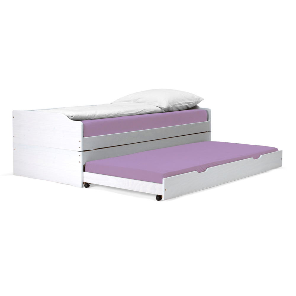 Postel s výsuvnými přistýlkami, bílá, masiv, 90x200, FLOPY