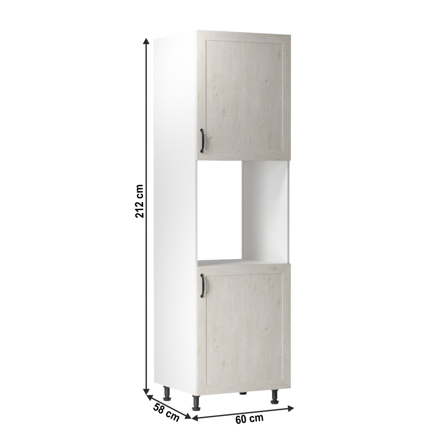 Materiál: DTD laminovaná Barva: bílá / sosna skandinávská Rozměry (ŠxHxV): 60x58x212 cm Jednodveřová, s vysouvacími košíky Prostor na vestavnou troubu (ŠxHxV): 57x56x59,5 cm Tloušťka materiálu: 15 mm Univerzálni provedení Systém tichého zavírání dvířek Dodávané v demontu Spodní skříňky ke kuchyni…