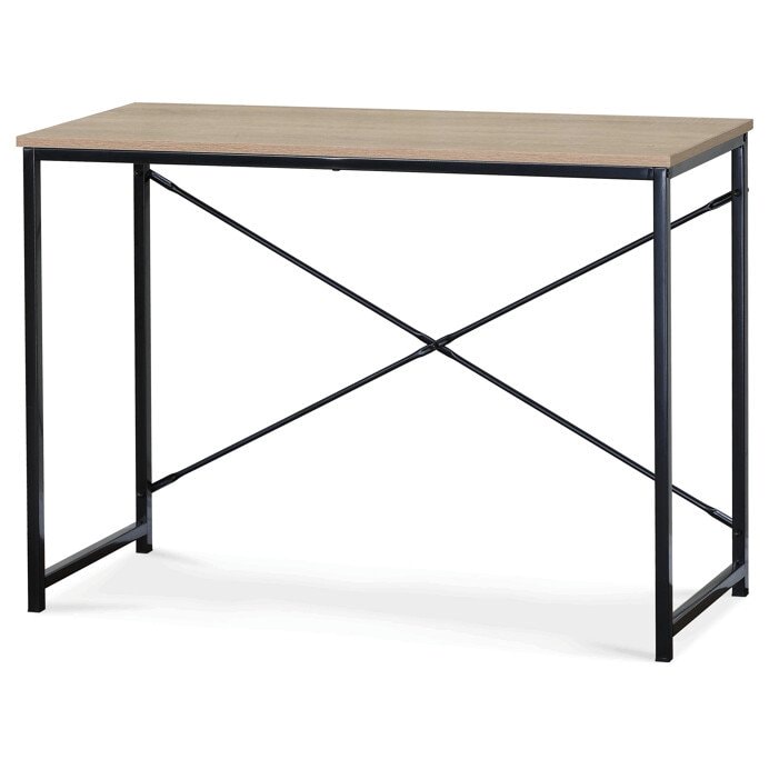 Pracovní stůl GD-504 OAK nabízí praktické řešení pro domácí i kancelářské prostředí. Deska stolu je vyrobena z MDF s dekorativním povrchem v odstínu divokého dubu, který je odolný a snadno se udržuje. Stabilní kovová podnož v černé barvě zajišťuje pevnost a dlouhou životnost celé konstrukce. Kompaktní rozměry 100x40x70 cm umožňují efektivní využití prostoru i v menších místnostech. Celková pevnost a stabilita stolu podporují pohodlnou práci s dostatečným prostorem pro notebook či psací potřeby.