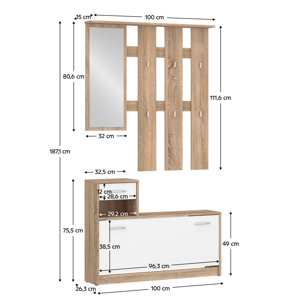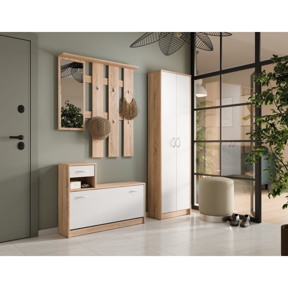 Předsíňová sestava, dub sonoma/bílá, VIRA-MECKI NEW