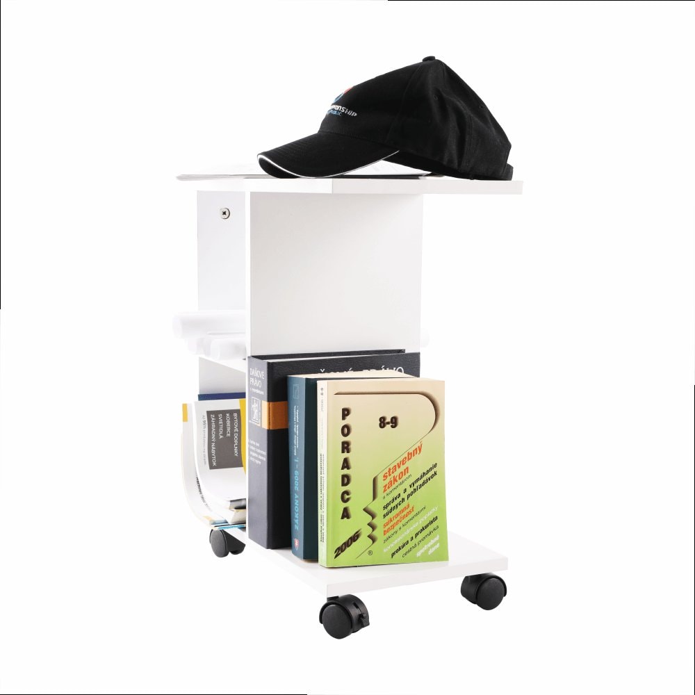 Příruční stolek ABBAS NEW Materiál: DTD laminovaná Provedení: bílá Rozměry (ŠxHxV): 40x24x50 cm Tloušťka materiálu: 15 mm Dodávané v demontu.