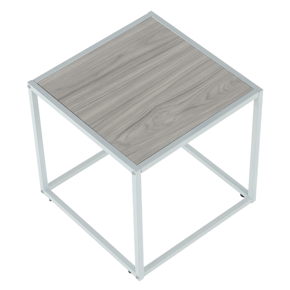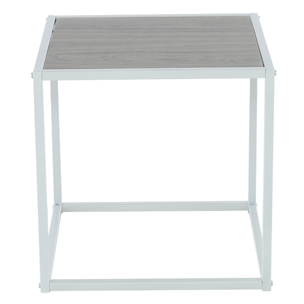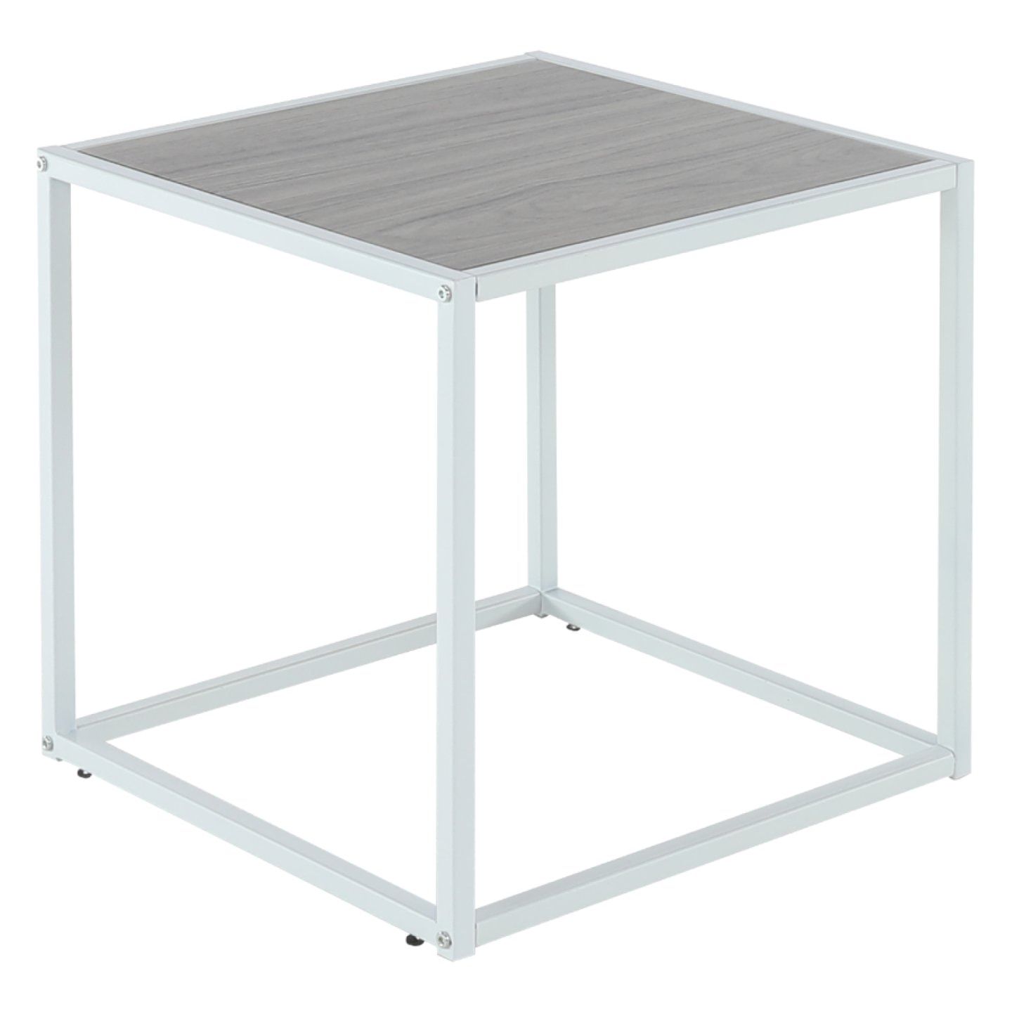 Elegantní příruční stolek. Barva: bílá / dubové dřevo Materiál: MDF / kov Rozměry (ŠxHxV): 40x40x40 cm Dodávané v demontu.