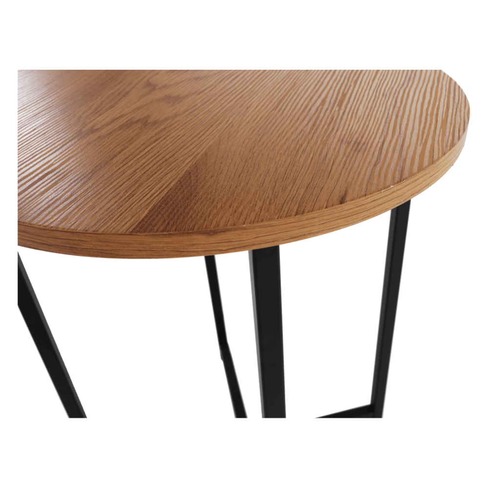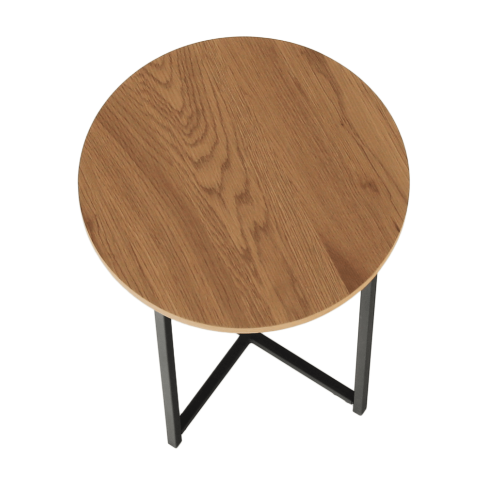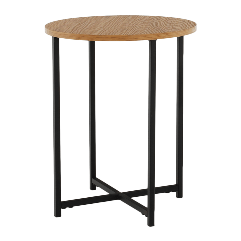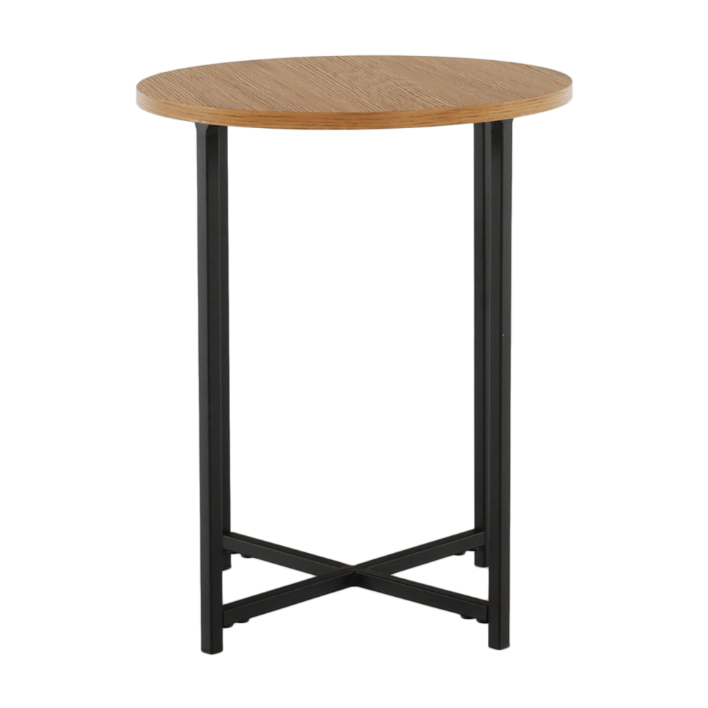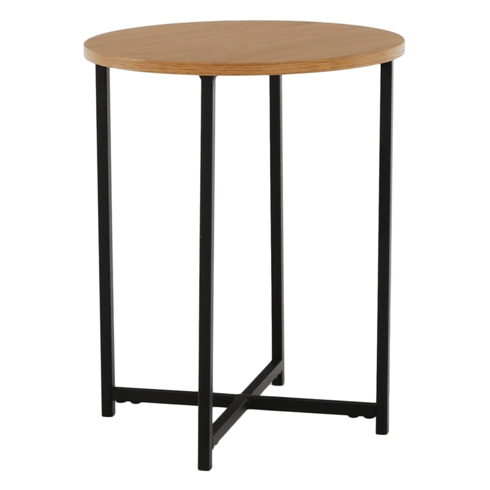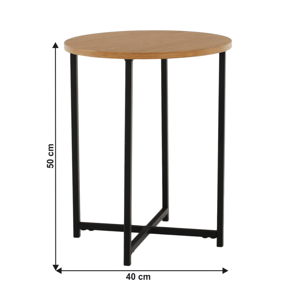 Příruční stolek IMSAR Materiál: MDF / kov Barva: dub / černá Rozměry (průměr x V): 40x50 cm Dodávané v demontu.