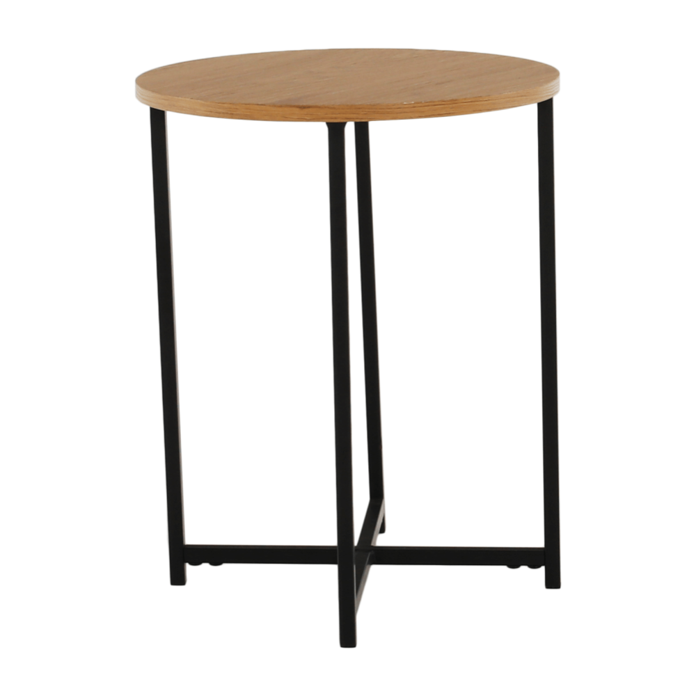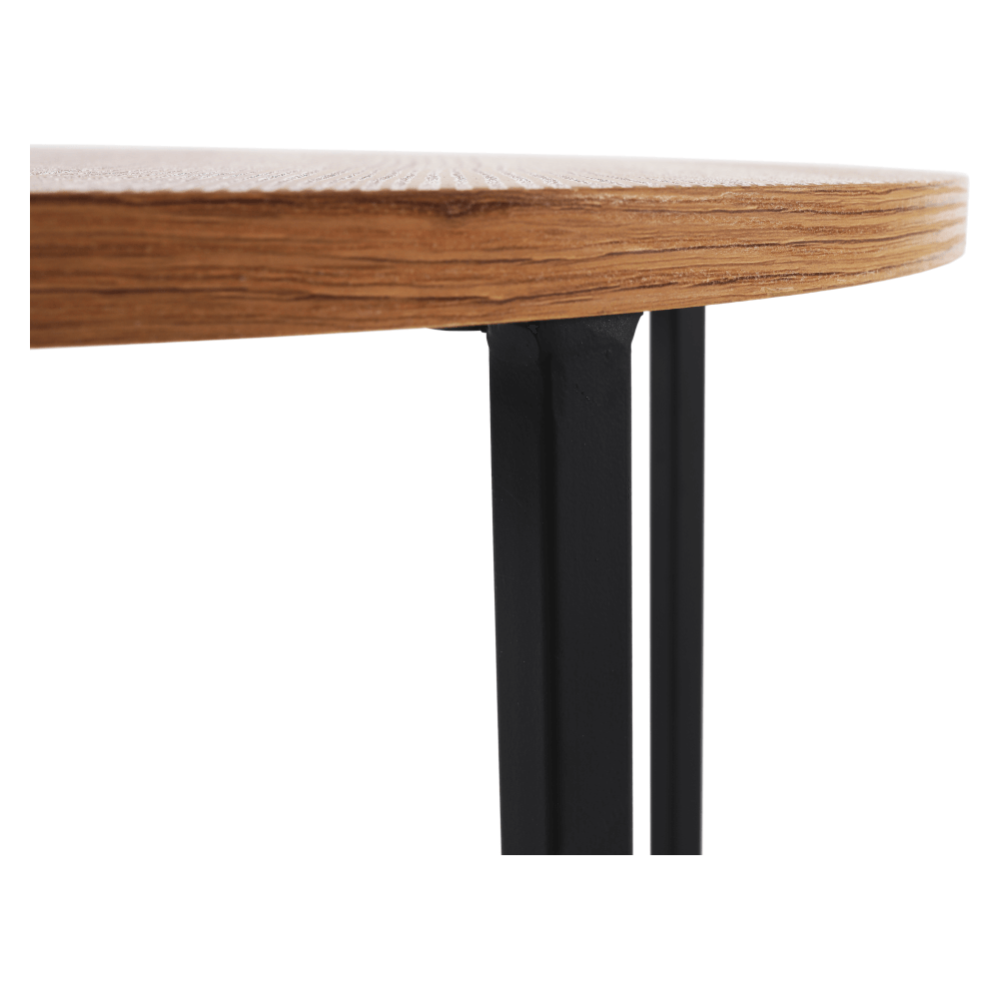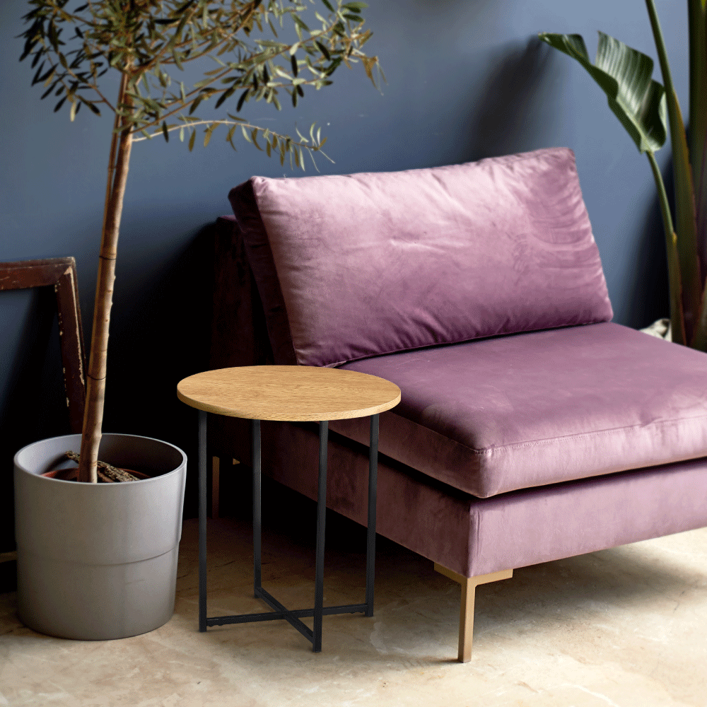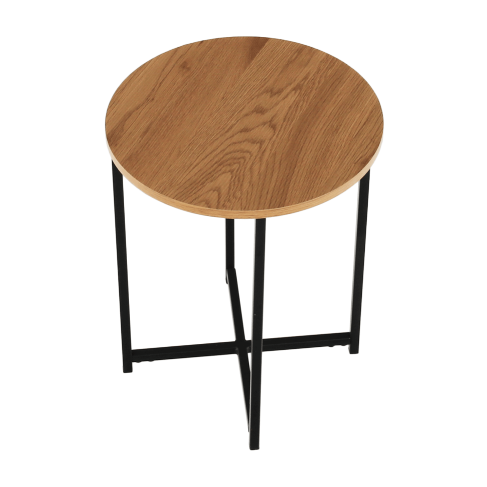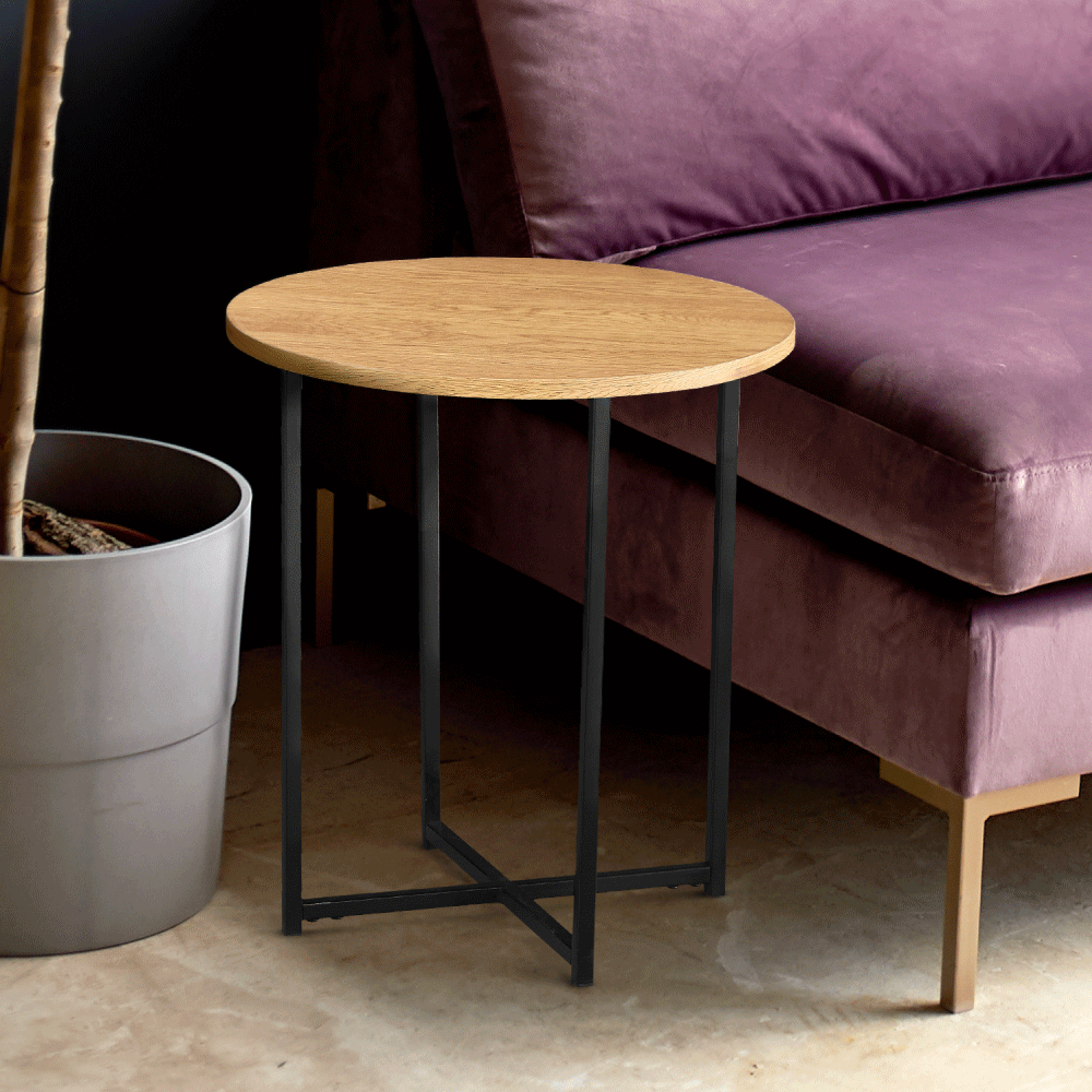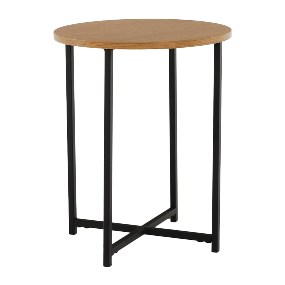 Příruční stolek IMSAR Materiál: MDF / kov Barva: dub / černá Rozměry (průměr x V): 40x50 cm Dodávané v demontu.