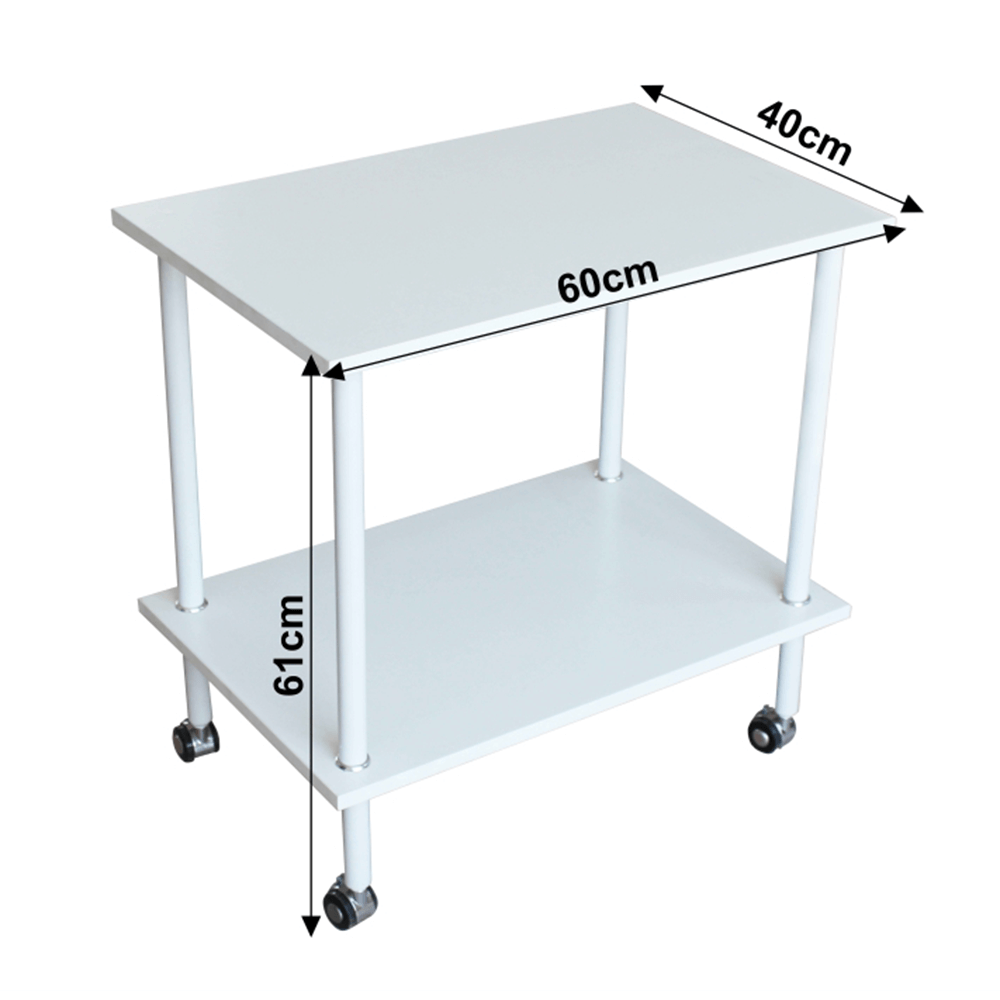 Příruční stolek na kolečkách LABON Materiál: MDF/kov Barva: matná bílá Rozměry (ŠxHxV): 60x40x61 cm Tloušťka materiálu: 18 mm Dodávané v demontu.