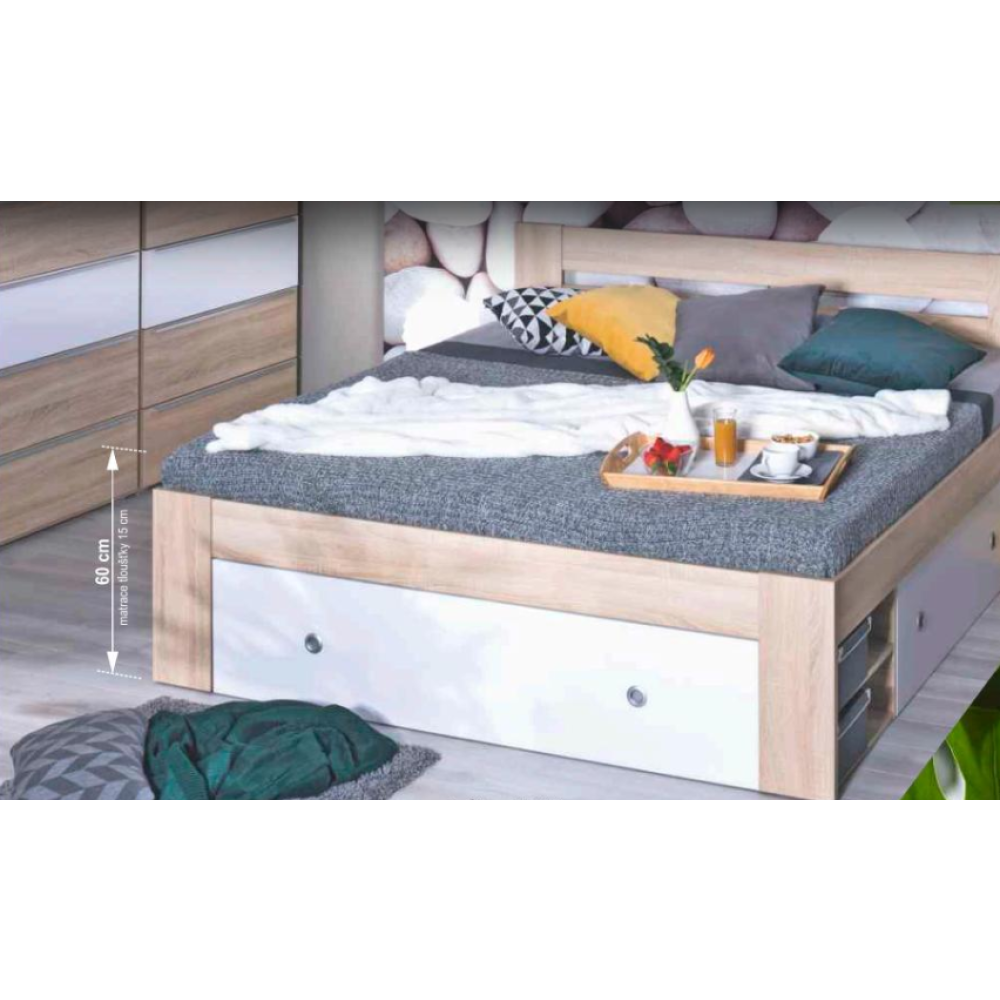 Dalšími přednostmi této praktické a moderní postele je velké množství úložného prostoru ve formě výsuvných zásuvek, které jsou opatřeny kolečky. Navíc postel nabízí další úložné místo jako např. police na knihy, nebo časopisy.