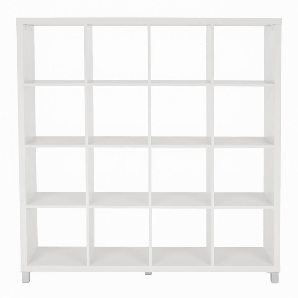 Víceúčelový regál Tofi vhodný do ložnice, kanceláře, obývacího nebo dětského pokoje. Regál má 16 otevřených polic a je vyrobený z lamina v dezénu bílá. Korpus hrubý až 35 mm, libovolně lze kombinovat dvířka a úložné boxy. Dodáváme v demontu.