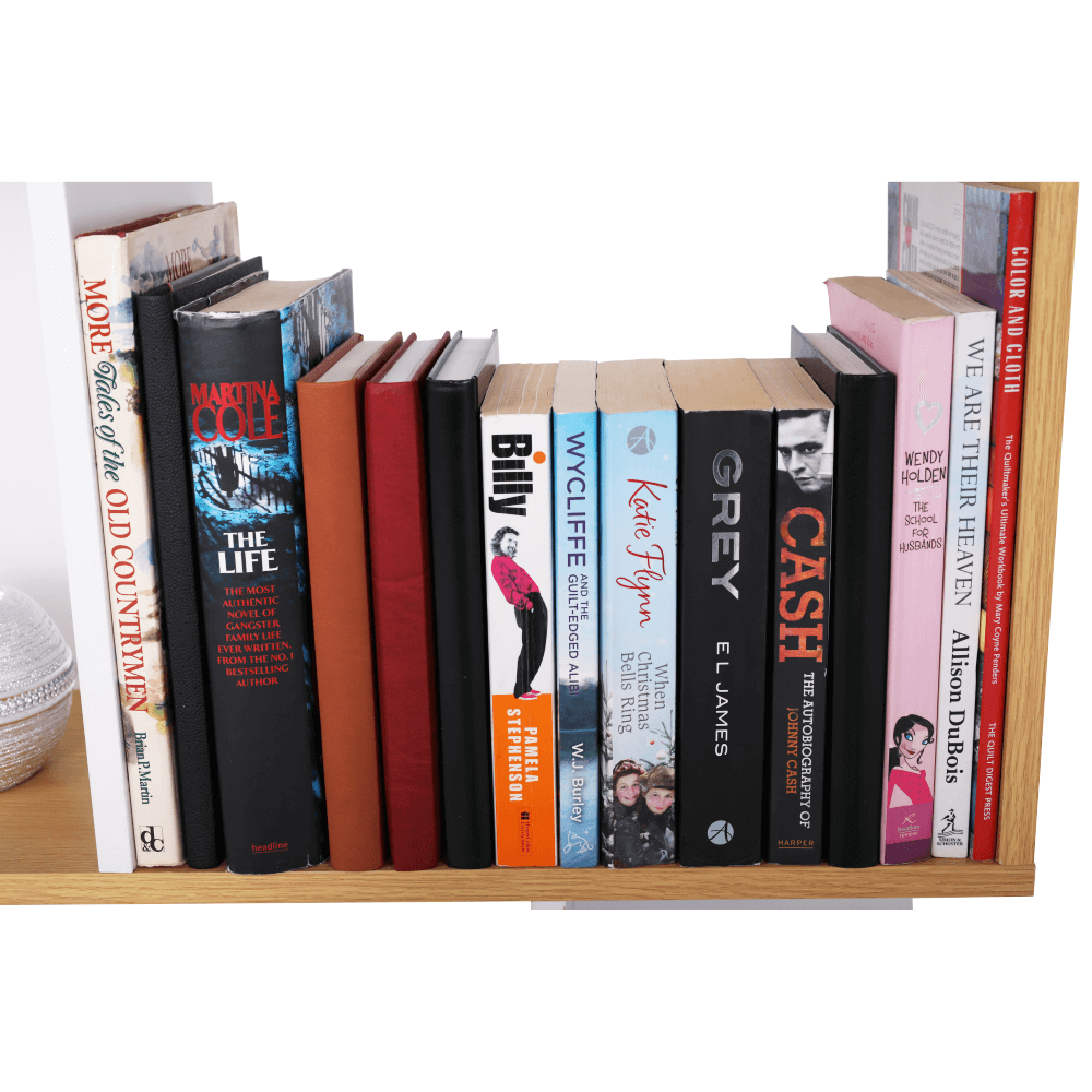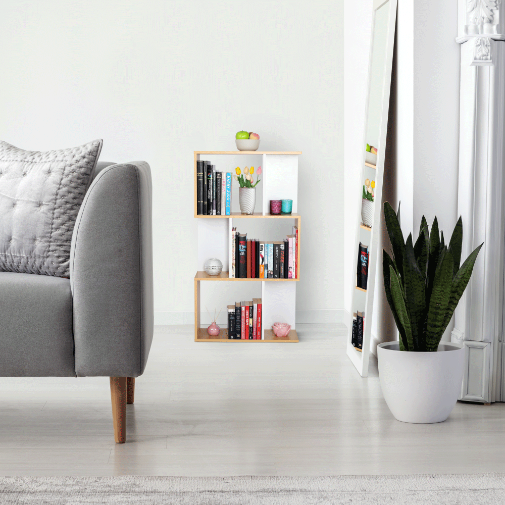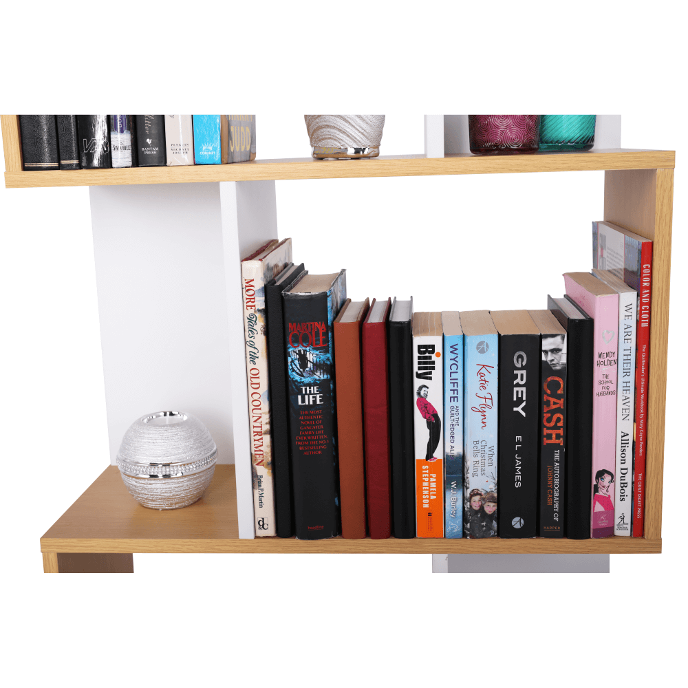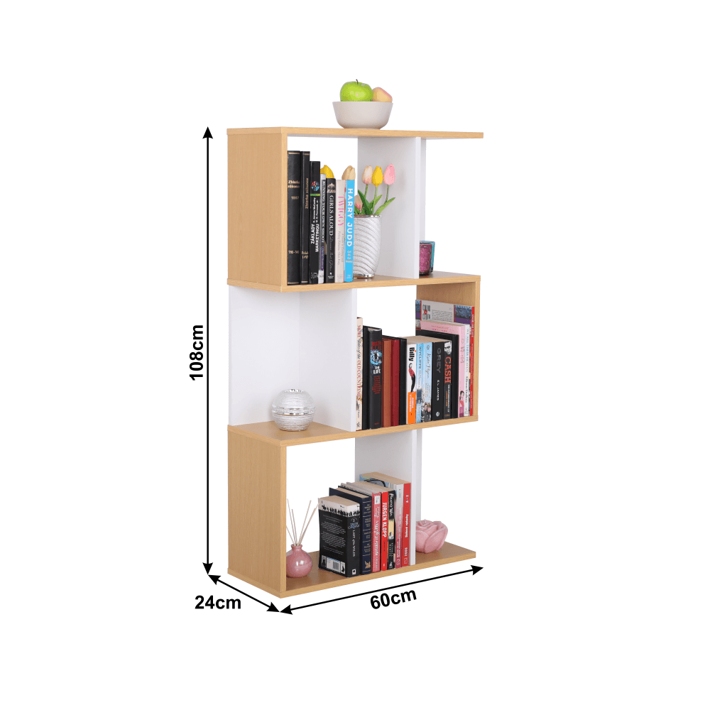 Moderní víceúčelový regál. Provedení: DTD Barva: borovice / bílá. Rozměry (ŠxHxV): 60x24x108 cm Dodávané v demontu. Hrúbka materiálu: 15 mm