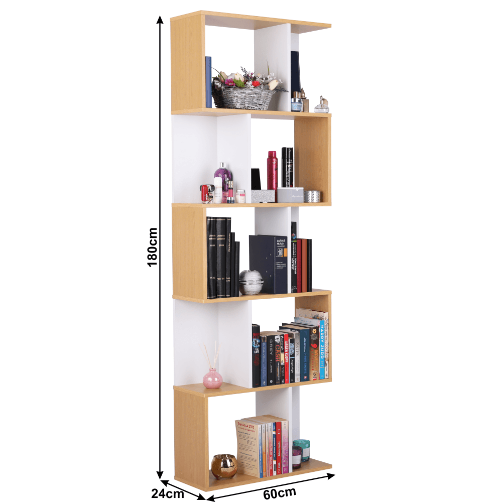 Moderní víceúčelový regál. Provedení: DTD Barva: borovice / bílá. Rozměry (ŠxHxV): 60x24x180 cm Hrúbka materiálu: 15 mm