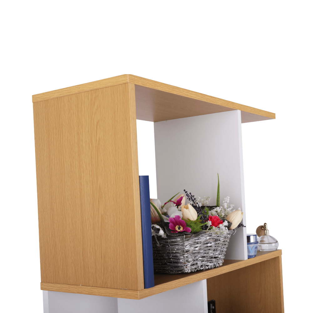Moderní víceúčelový regál. Provedení: DTD Barva: borovice / bílá. Rozměry (ŠxHxV): 60x24x180 cm Hrúbka materiálu: 15 mm