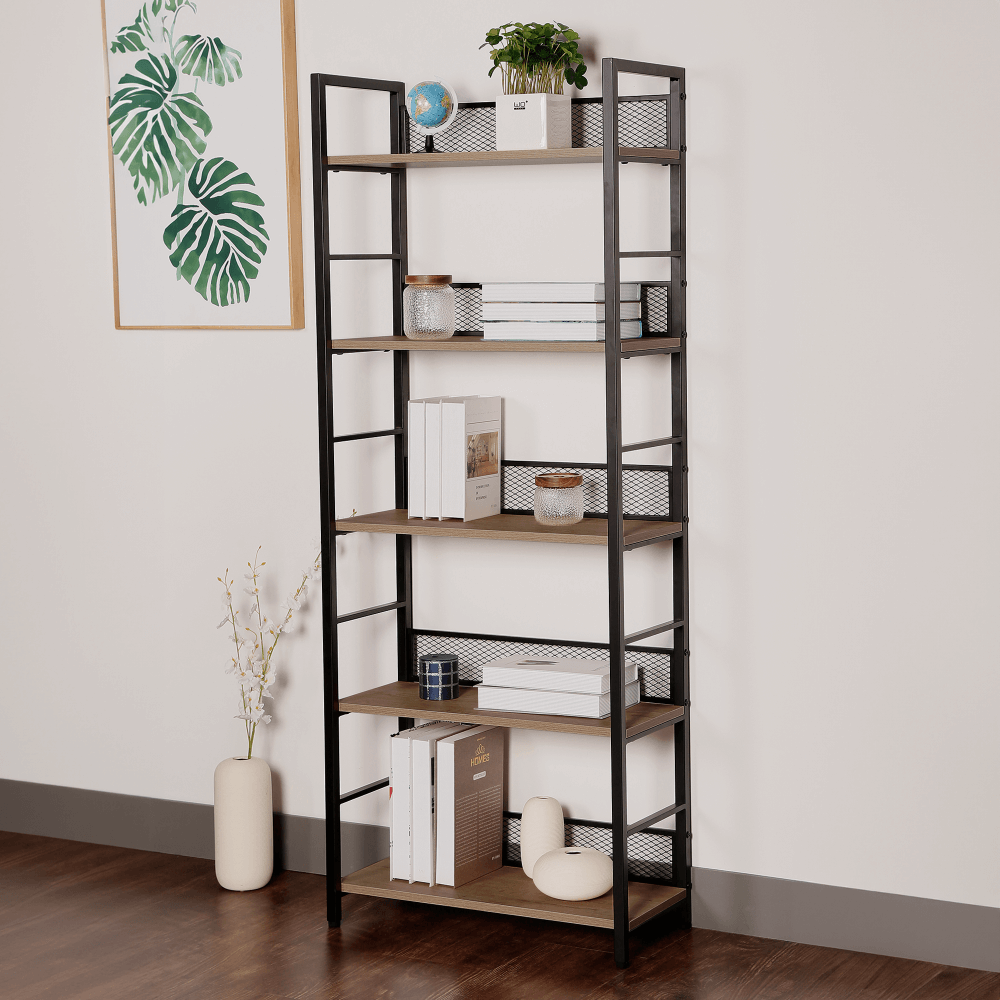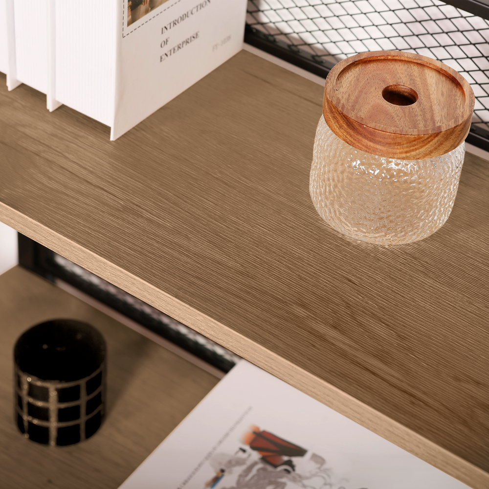 Regál, který poskytuje dostatek úložného prostoru v podobě 6-ti polic. Stabilitu regálu dodává kovová konstrukce v černé barvě. Police jsou vyrobeny z DTD laminovaná v provedení dub. Barevná kombinace, která nevyjde z módy. Police jsou vhodné pro vystavení knih, dekorací, květin, ale i suvenýrů z dovolených. Regál je na zadní části ohraničen černou kovovou síťkou, která umocňuje a vkusně doplňuje celý design. KELER typ 3 bude zajímavým doplňkem, který zútulní každý interiér.