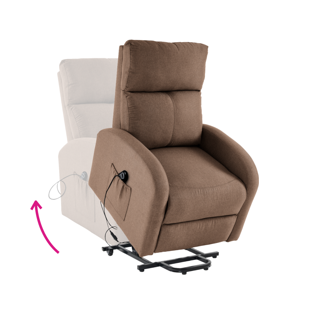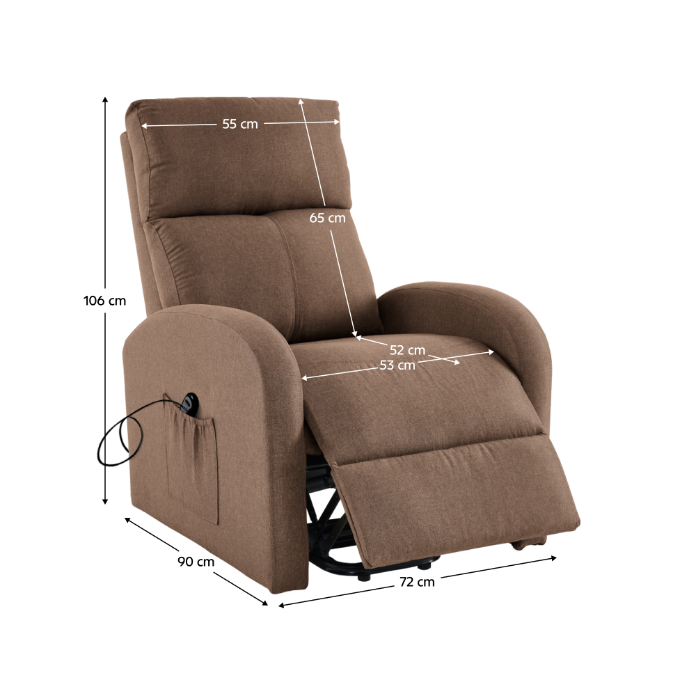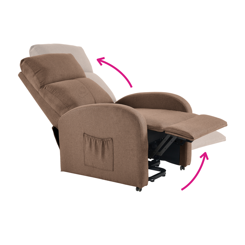 Svým moderním, nadčasovým designem přiláká všechny pohledy a přesvědčí vás i svými vlastnostmi. Toto křeslo je čalouněno světle hnědou látkou a je navíc polohovací. Jednoduchým mechanismem dokážete křeslo sklopit do relaxační polohy. Křeslo NERIS myslí také na vaše unavené nohy. Ve spodní části naleznete podnož, kterou si velmi jednoduše dokážete zvednout. Disponuje také funkcí elektrického zvedání, což ocení zejména senioři. Obohaceno je o úložný prostor v podobě boční kapsy, do které můžete umístit dálkový ovladač nebo noviny. Vyložte si nohy, opřete hlavu a ruce a relaxujte v pohodlném křesle.