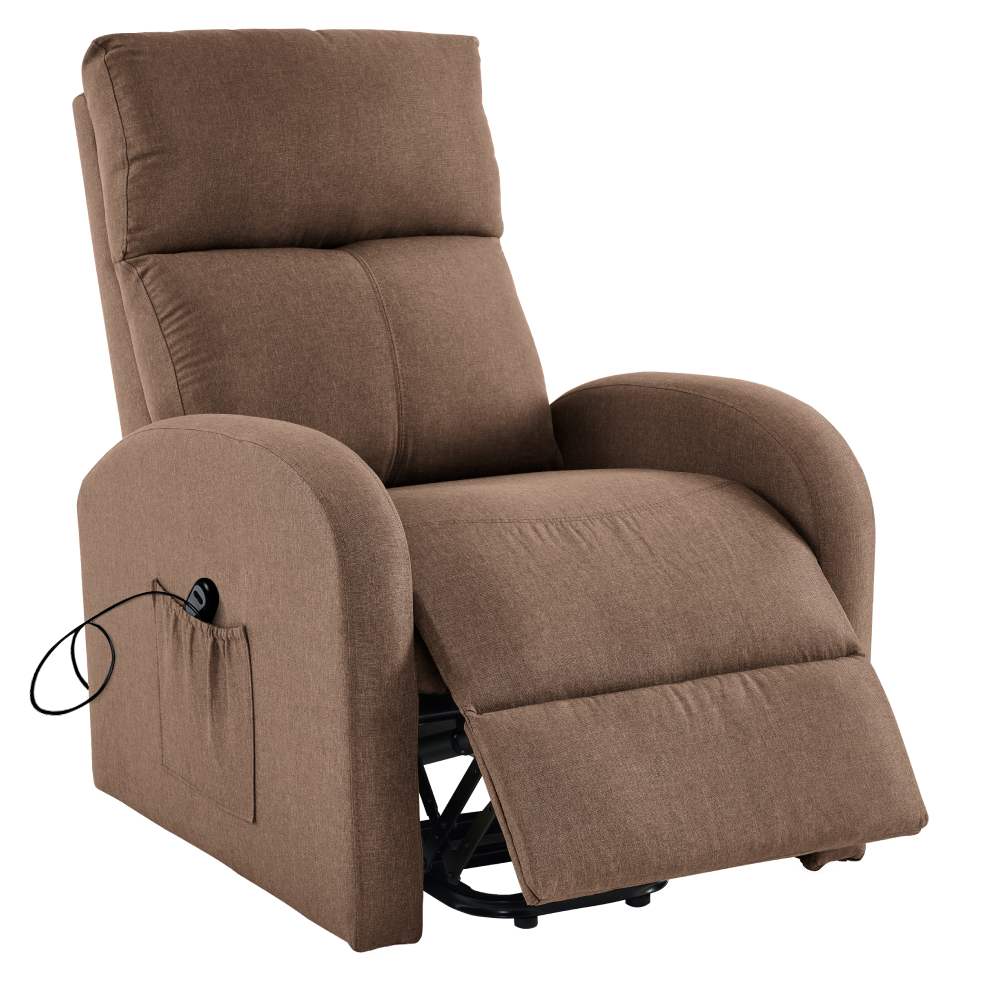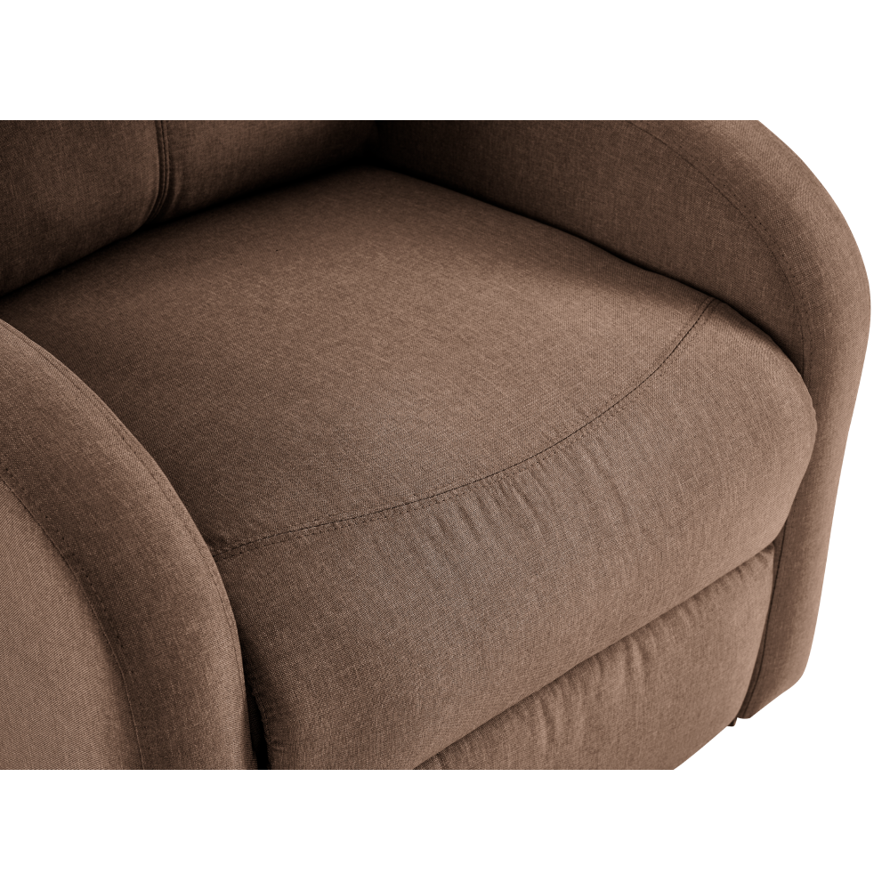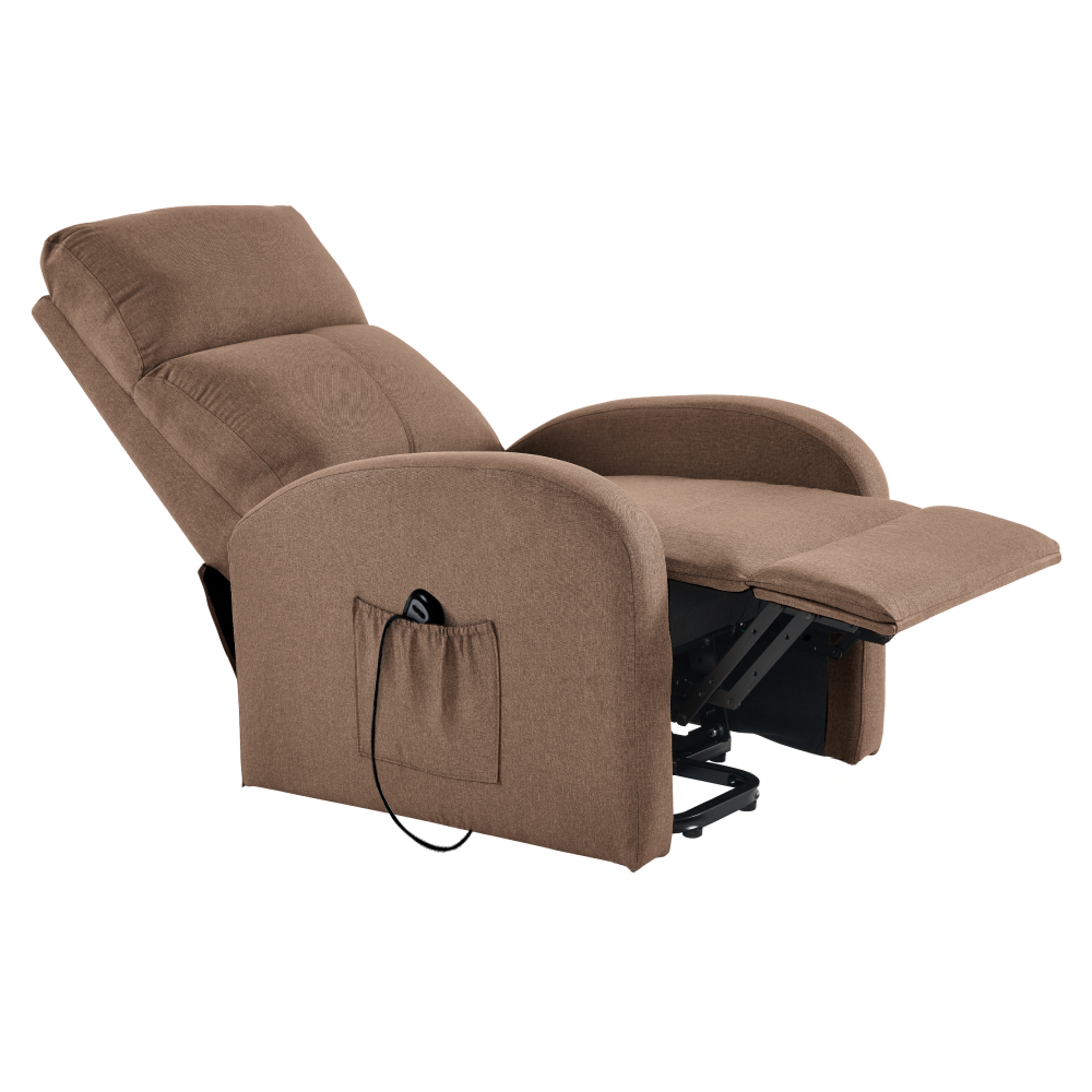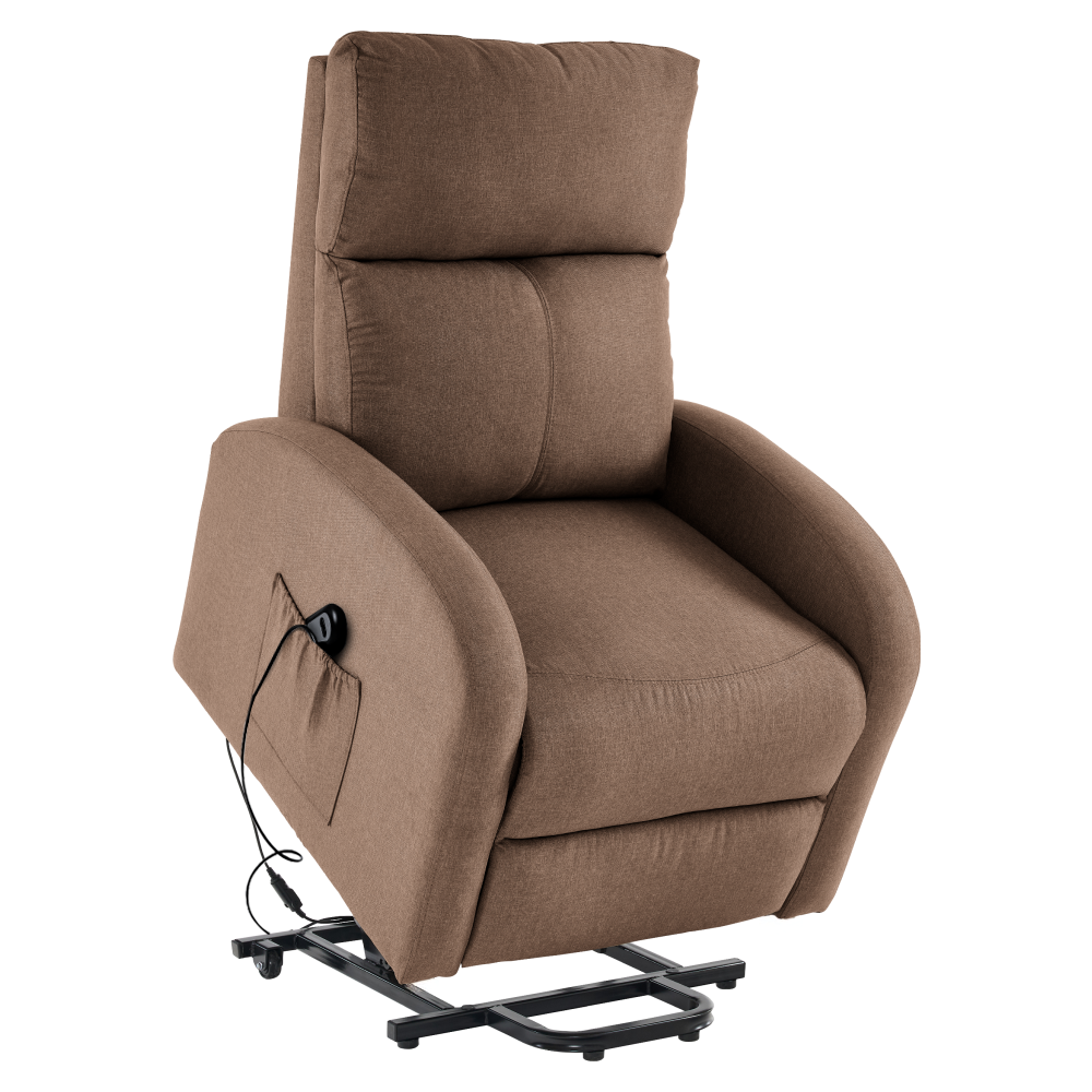 Svým moderním, nadčasovým designem přiláká všechny pohledy a přesvědčí vás i svými vlastnostmi. Toto křeslo je čalouněno světle hnědou látkou a je navíc polohovací. Jednoduchým mechanismem dokážete křeslo sklopit do relaxační polohy. Křeslo NERIS myslí také na vaše unavené nohy. Ve spodní části naleznete podnož, kterou si velmi jednoduše dokážete zvednout. Disponuje také funkcí elektrického zvedání, což ocení zejména senioři. Obohaceno je o úložný prostor v podobě boční kapsy, do které můžete umístit dálkový ovladač nebo noviny. Vyložte si nohy, opřete hlavu a ruce a relaxujte v pohodlném křesle.